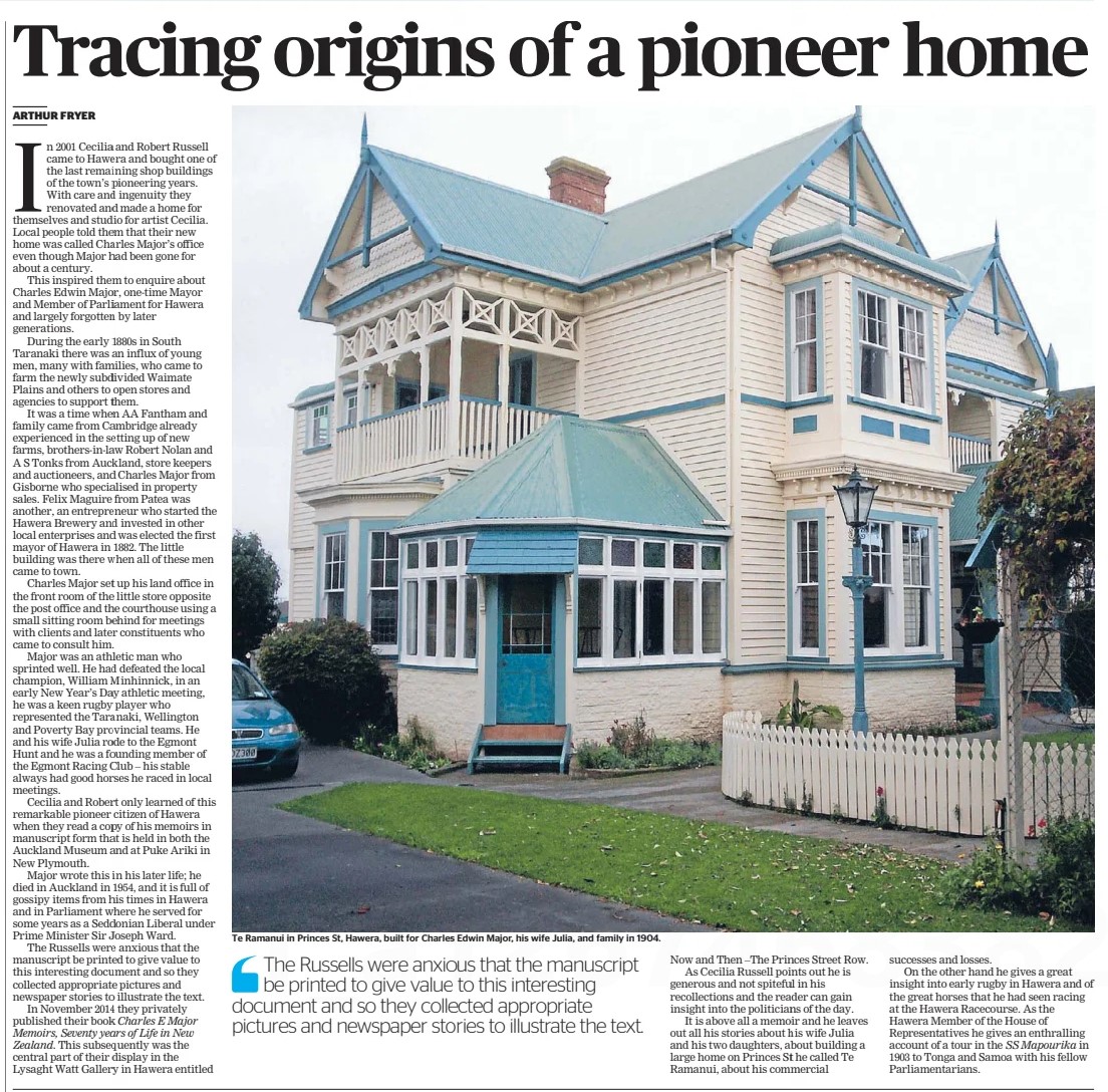 Tracing origins of a pioneer home (Taranaki Daily News 27 June 2015)