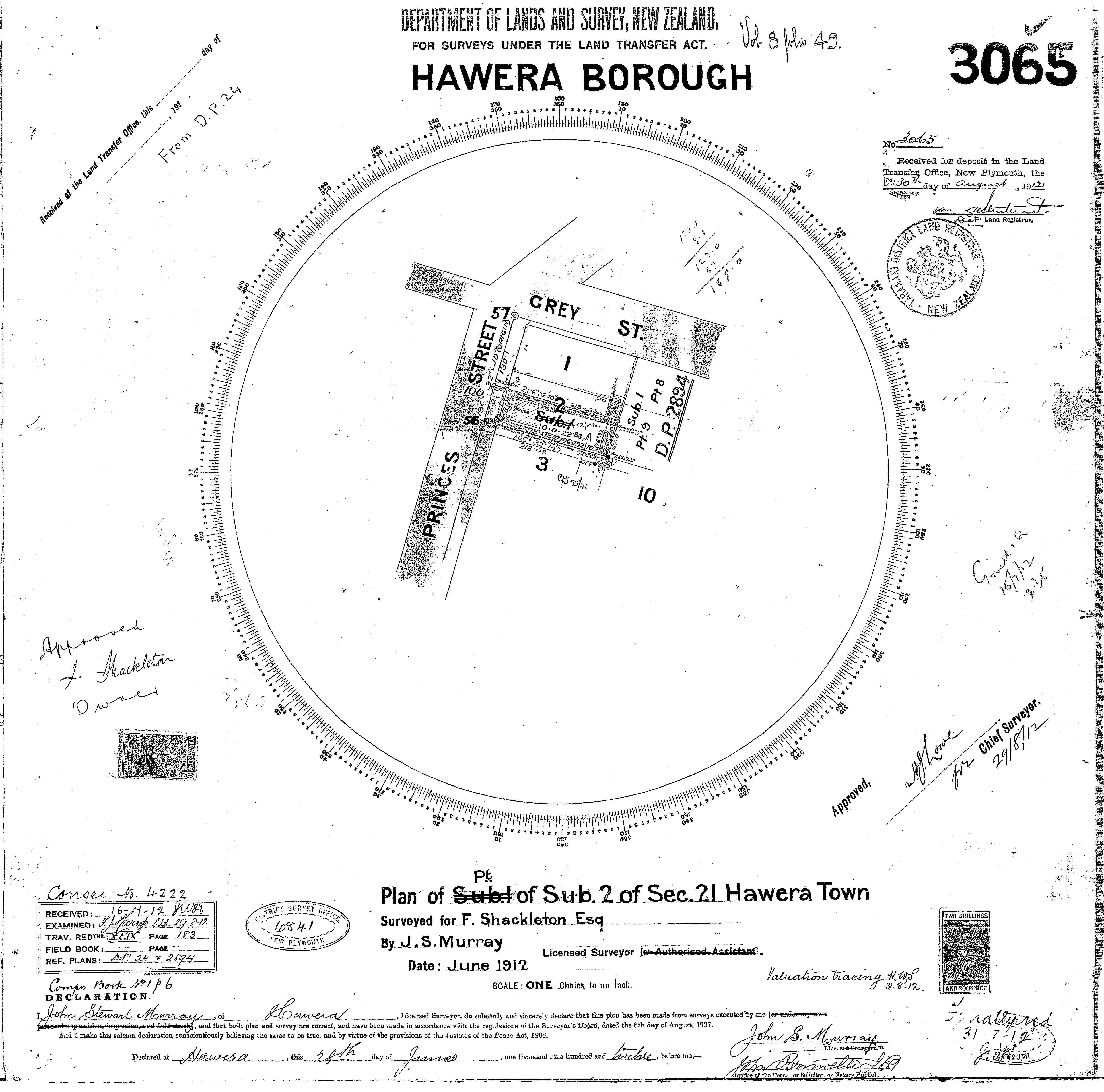 Taranaki DP3065 Sheet 1 (1912), ICS Pre 300,000 Cadastral Plan Index (Imaged by LINZ)