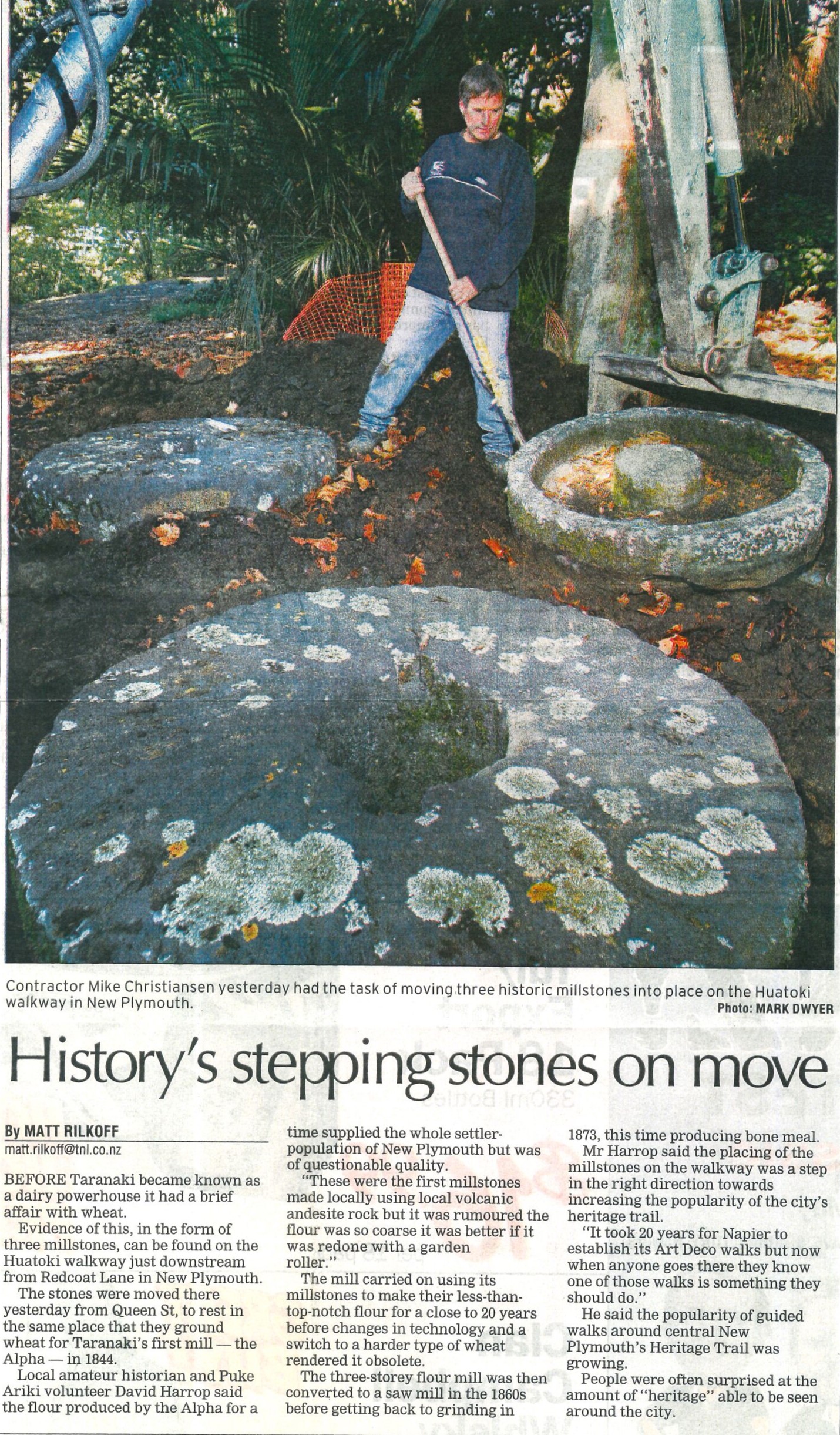 History's stepping stones on move (Taranaki Daily News 7 May 2008)