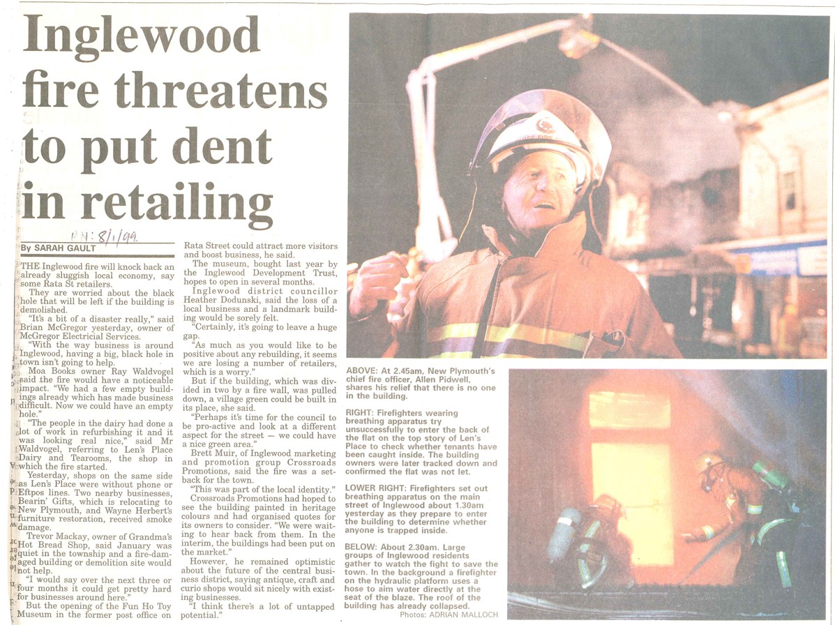 Inglewood fire threatens to put dent in retailing (Daily News 8 January 1999)