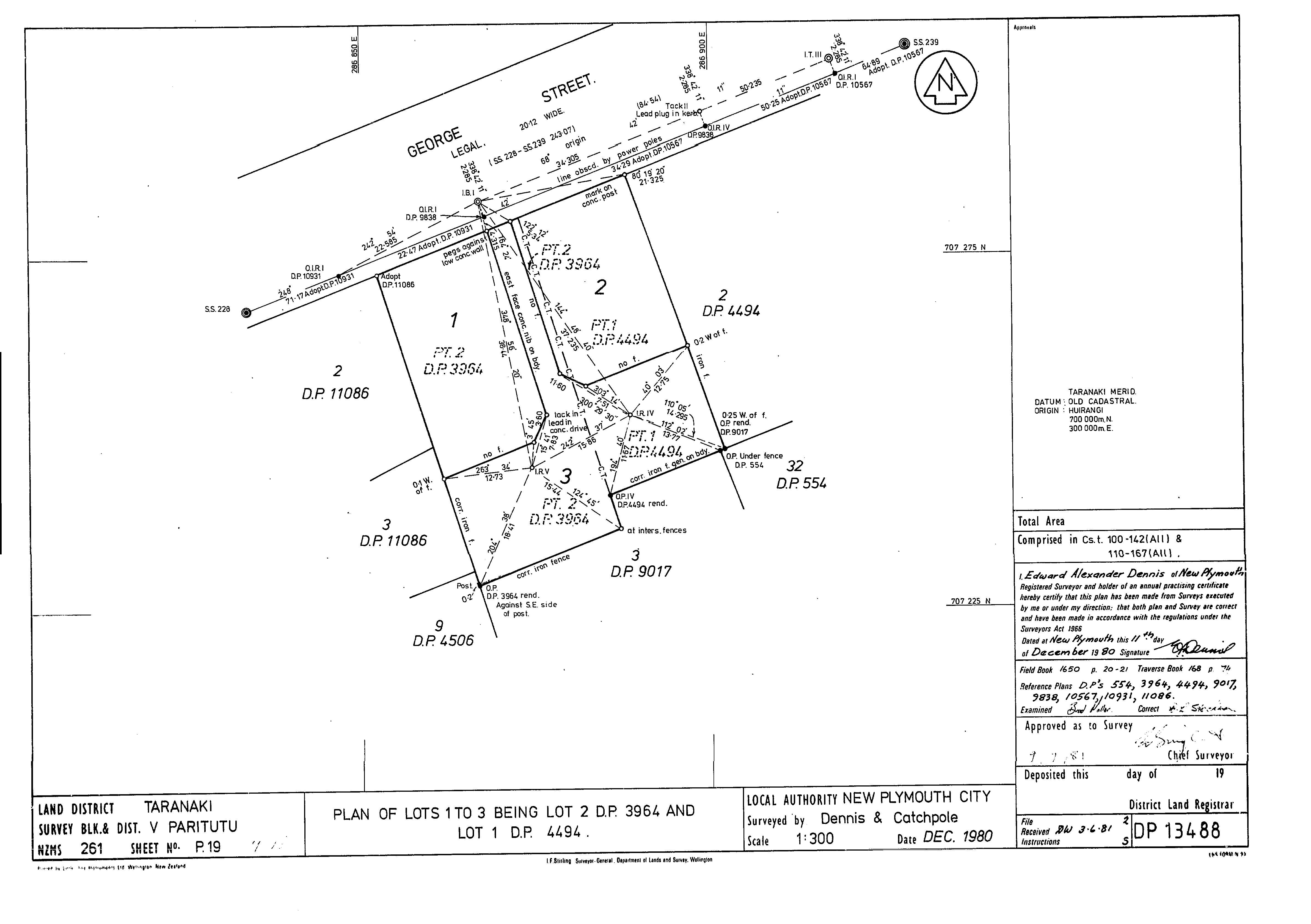Taranaki (Lot 2) DP13488 Sheet 1 (1980), ICS Pre 300,000 Cadastral Plan Index (Imaged by LINZ)