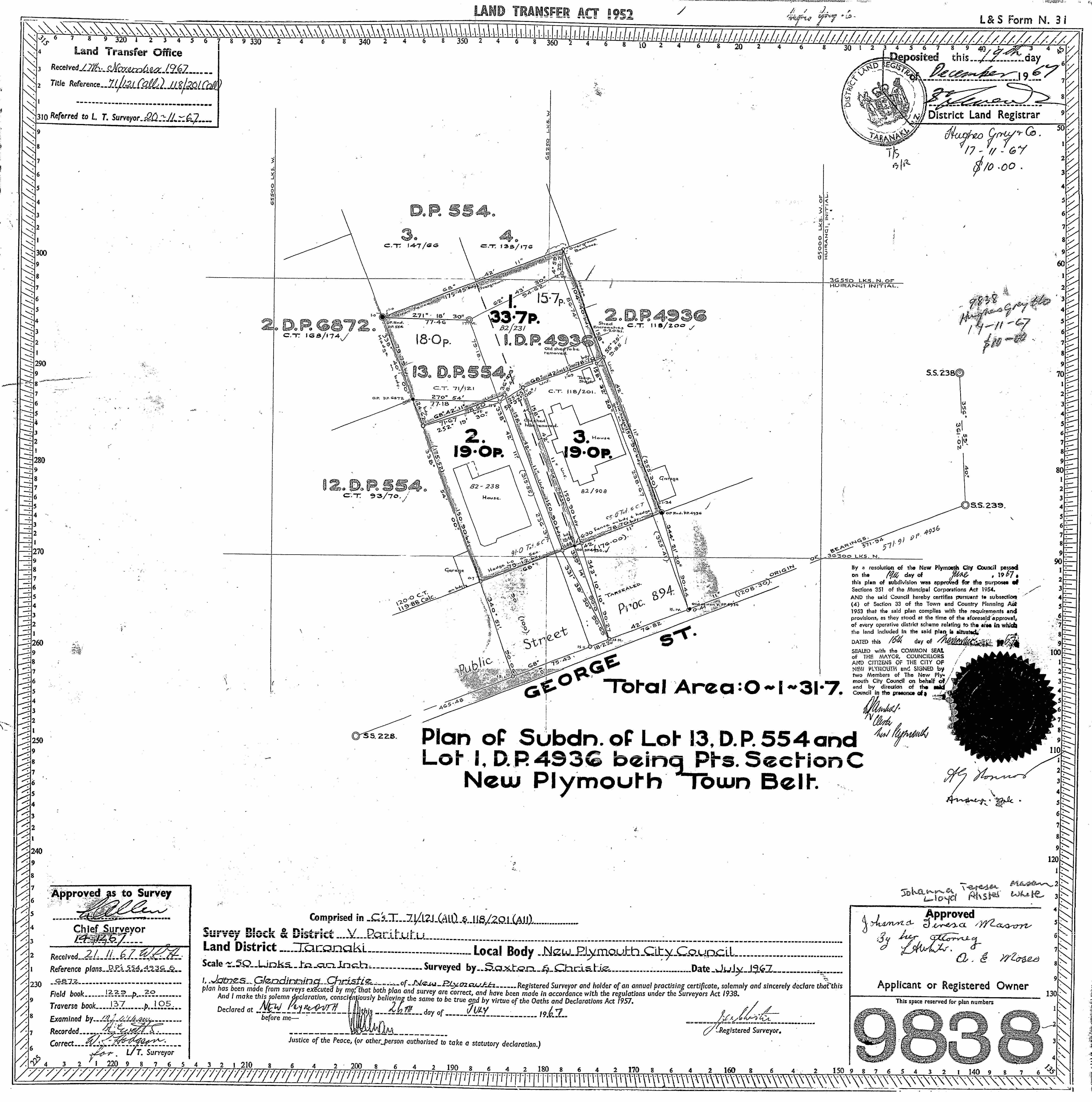 Taranaki (Lot 3) DP9838 Sheet 1 (1967), ICS Pre 300,000 Cadastral Plan Index (Imaged by LINZ)