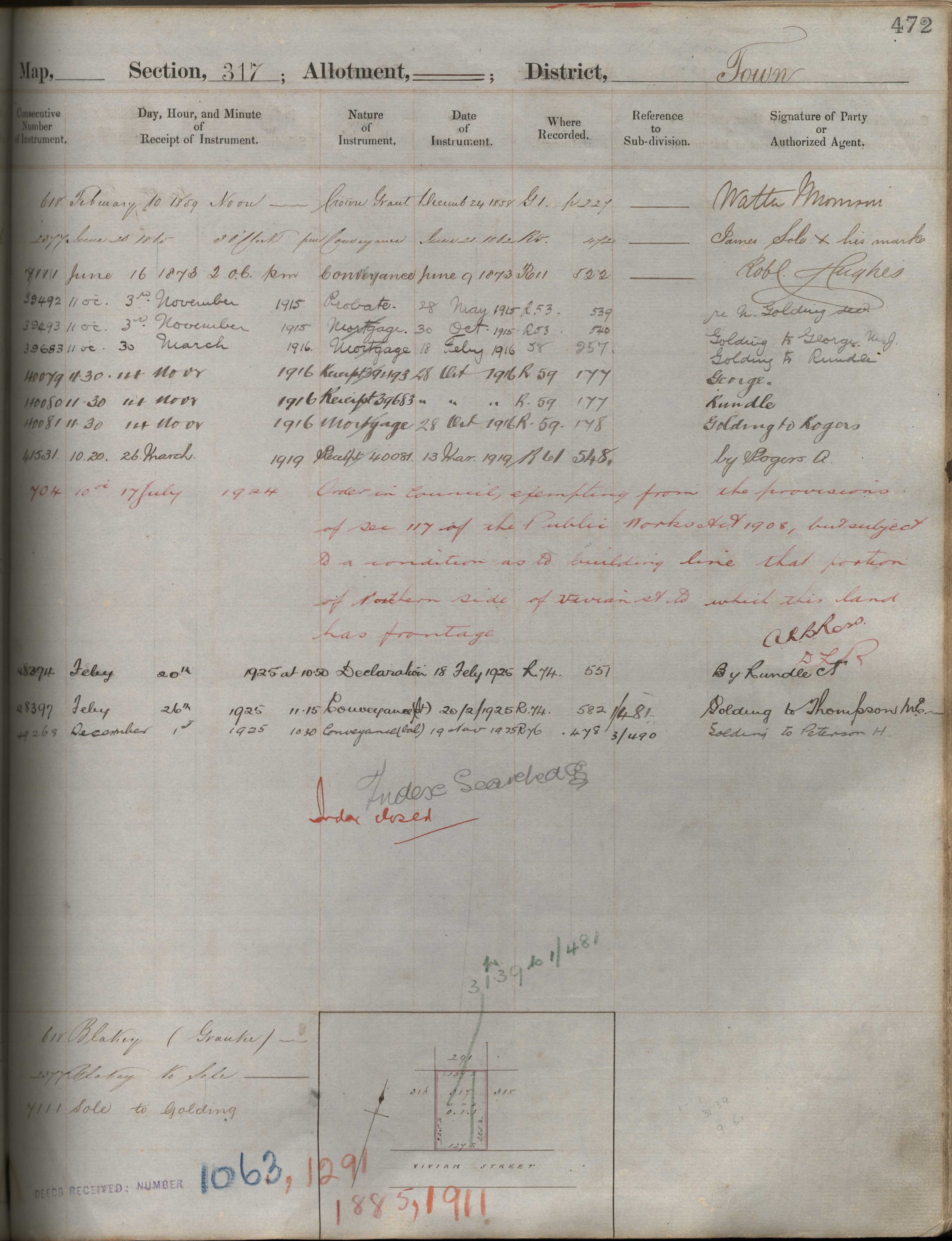 Town Section 317, Taranaki Land Deed Index I1 Page 472. (Archives New Zealand)