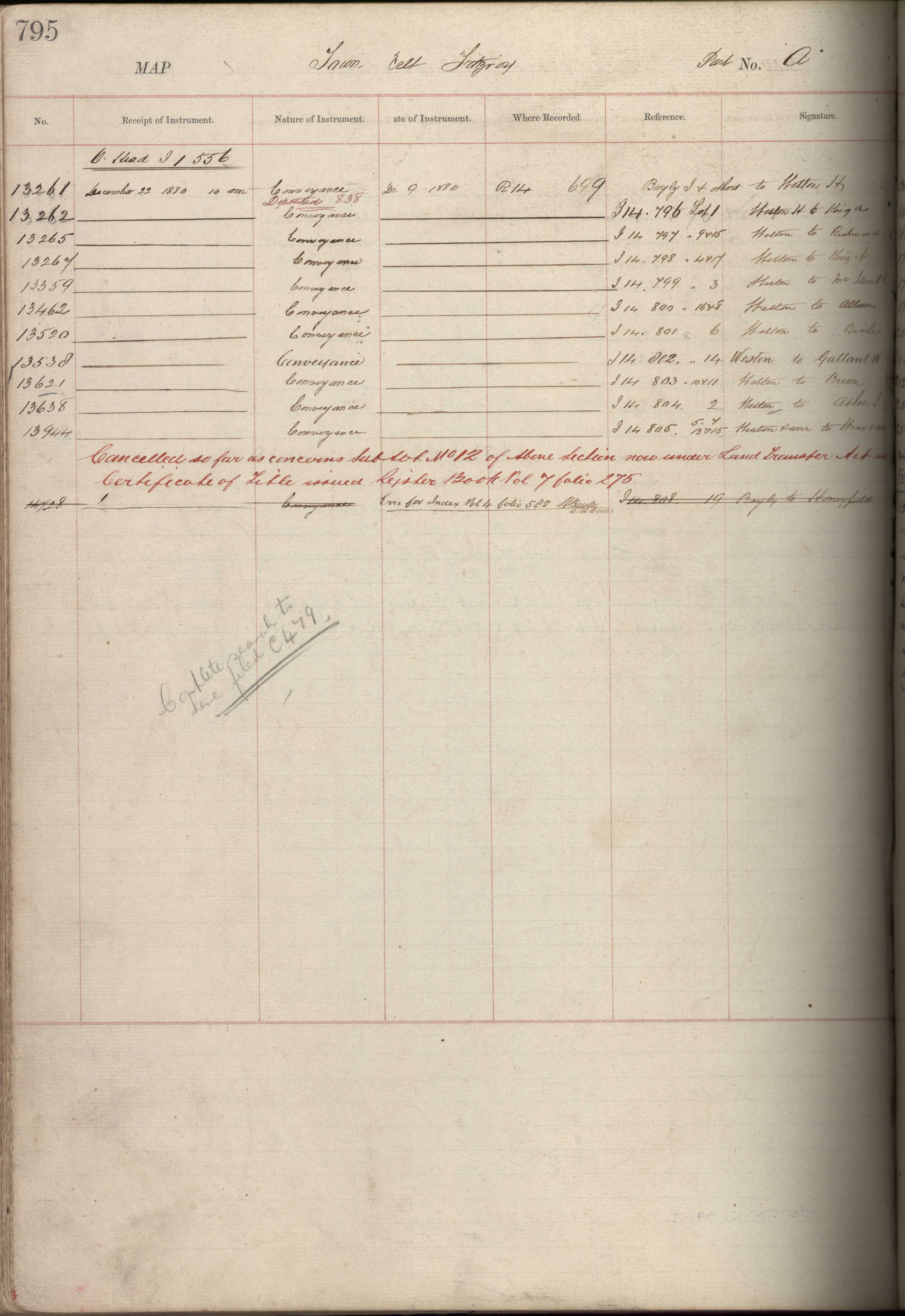 Town Belt (Part A), Taranaki Land Deed Index I14 Page 795. (Archives New Zealand)