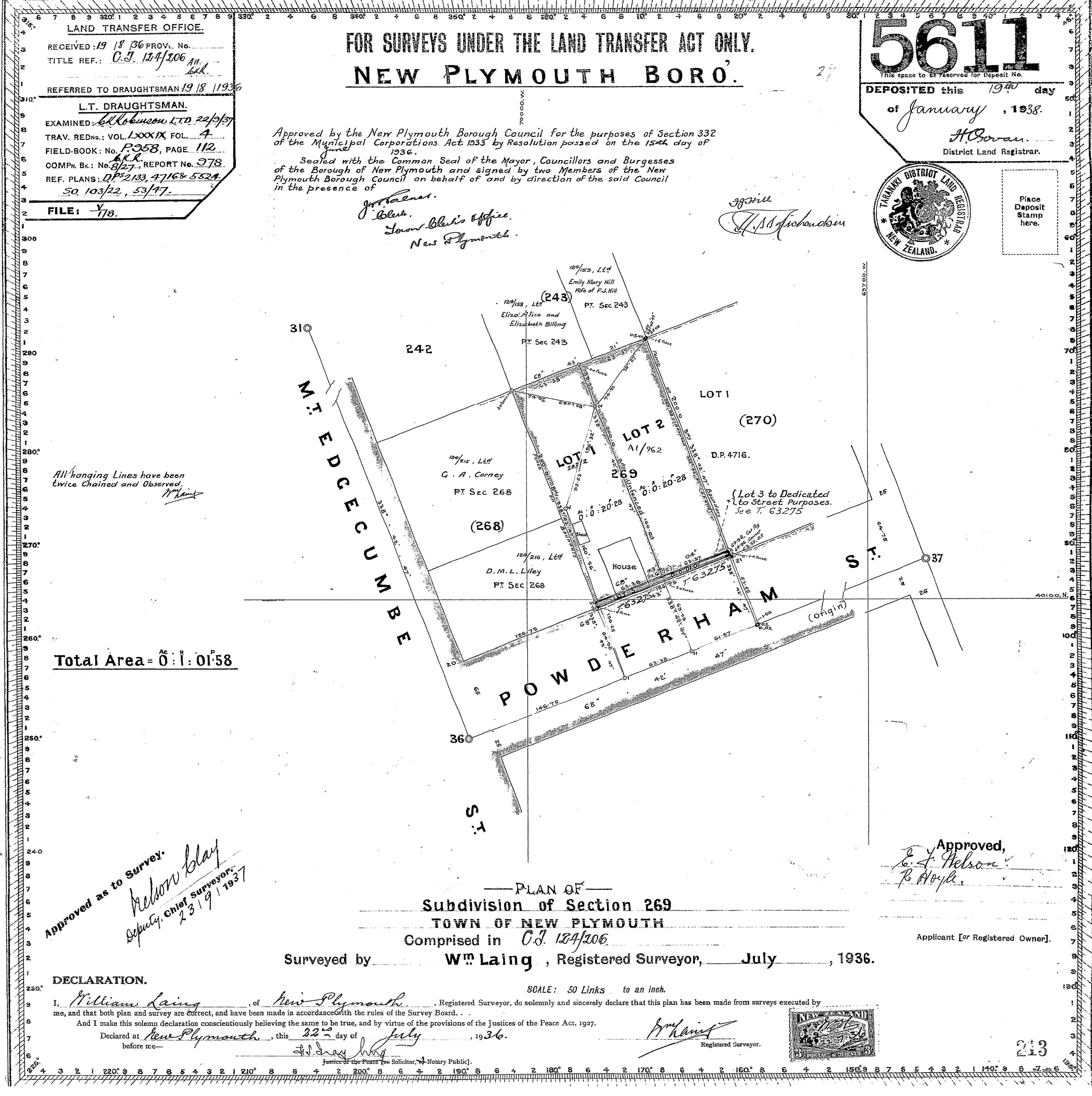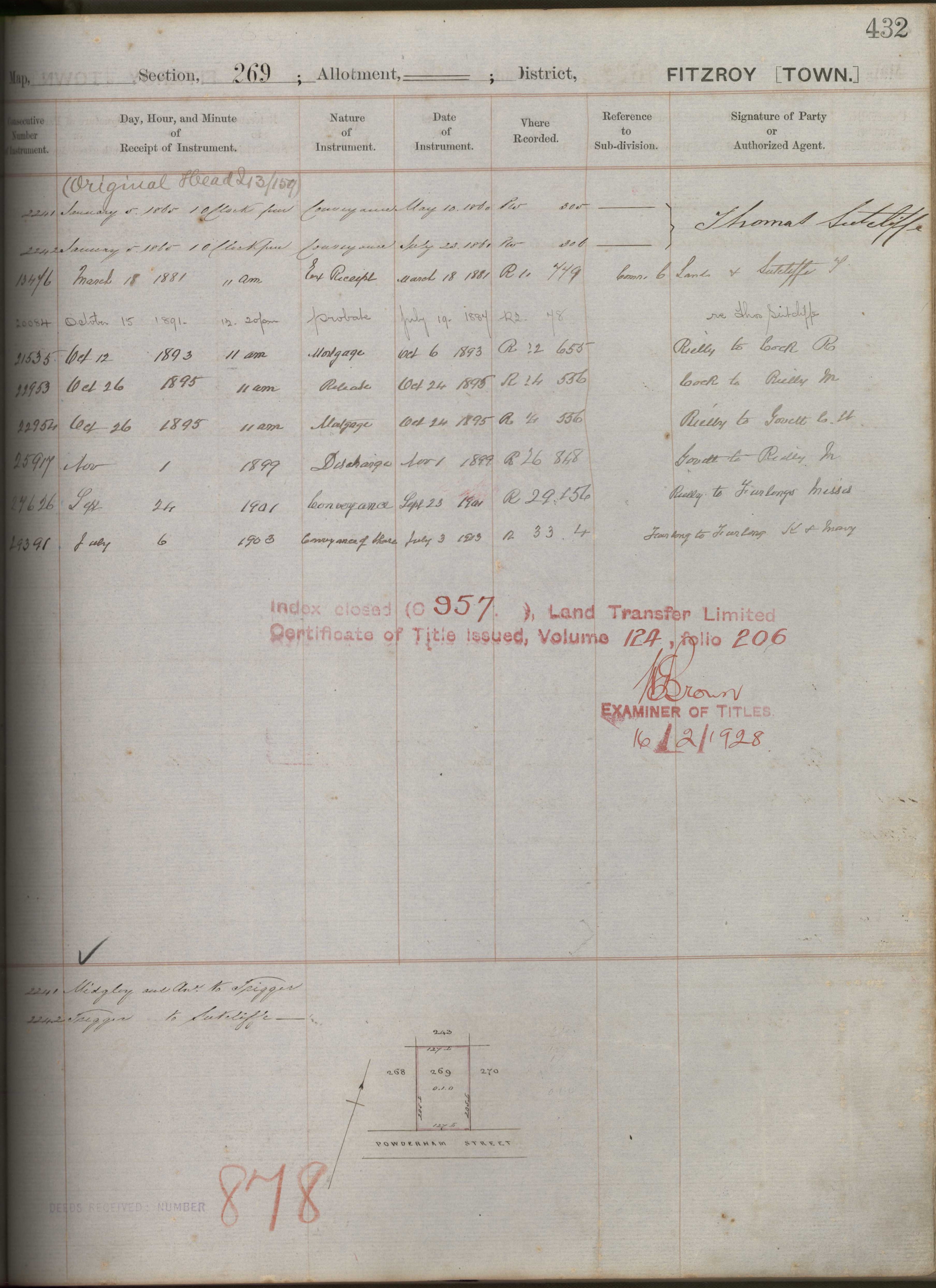 Town Section 269, Taranaki Land Deed Index I3 page 432. (Archives New Zealand)