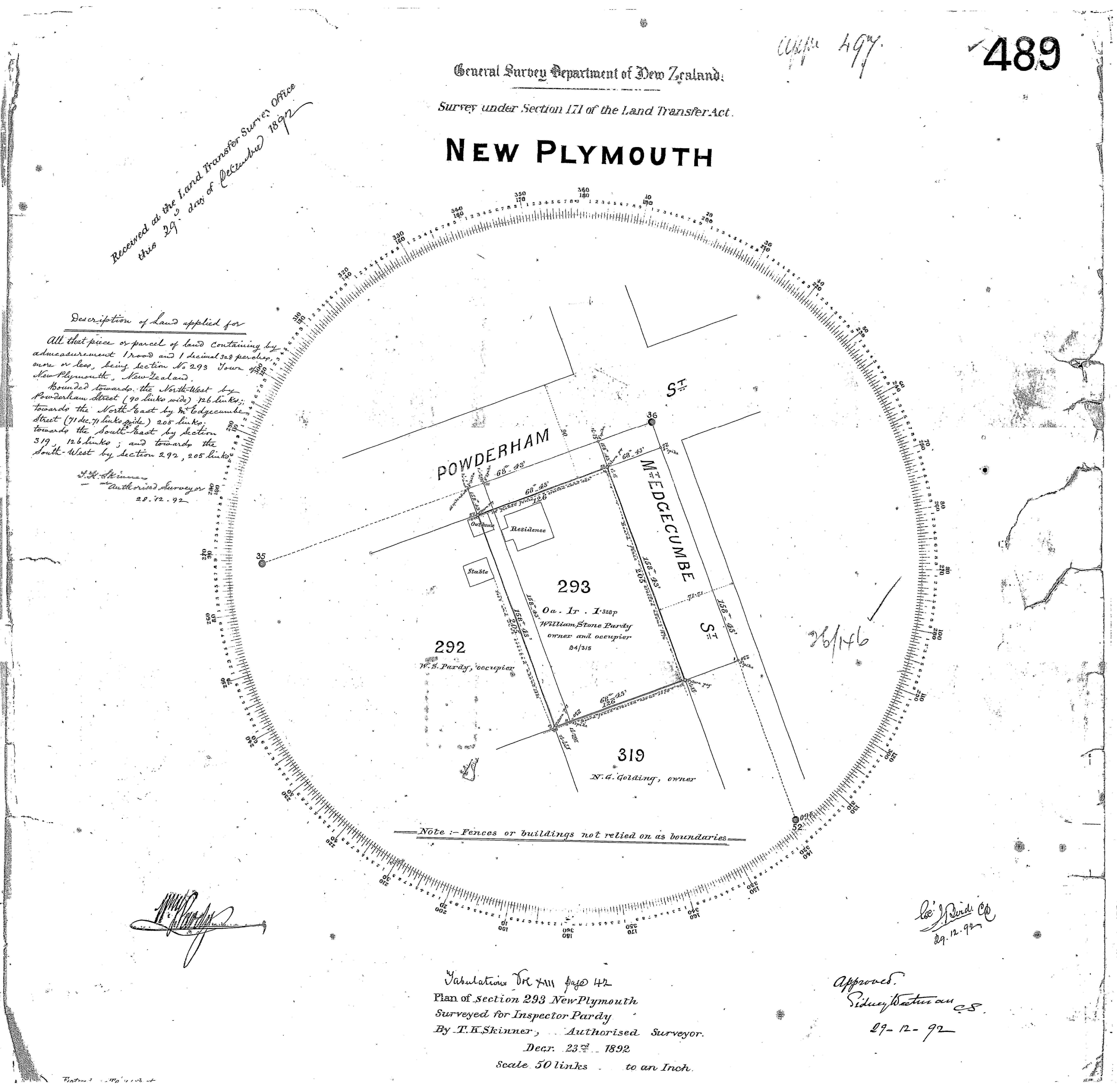 Town Section 292, Taranaki Land Deed Index I13 page 380. (Archives New Zealand)