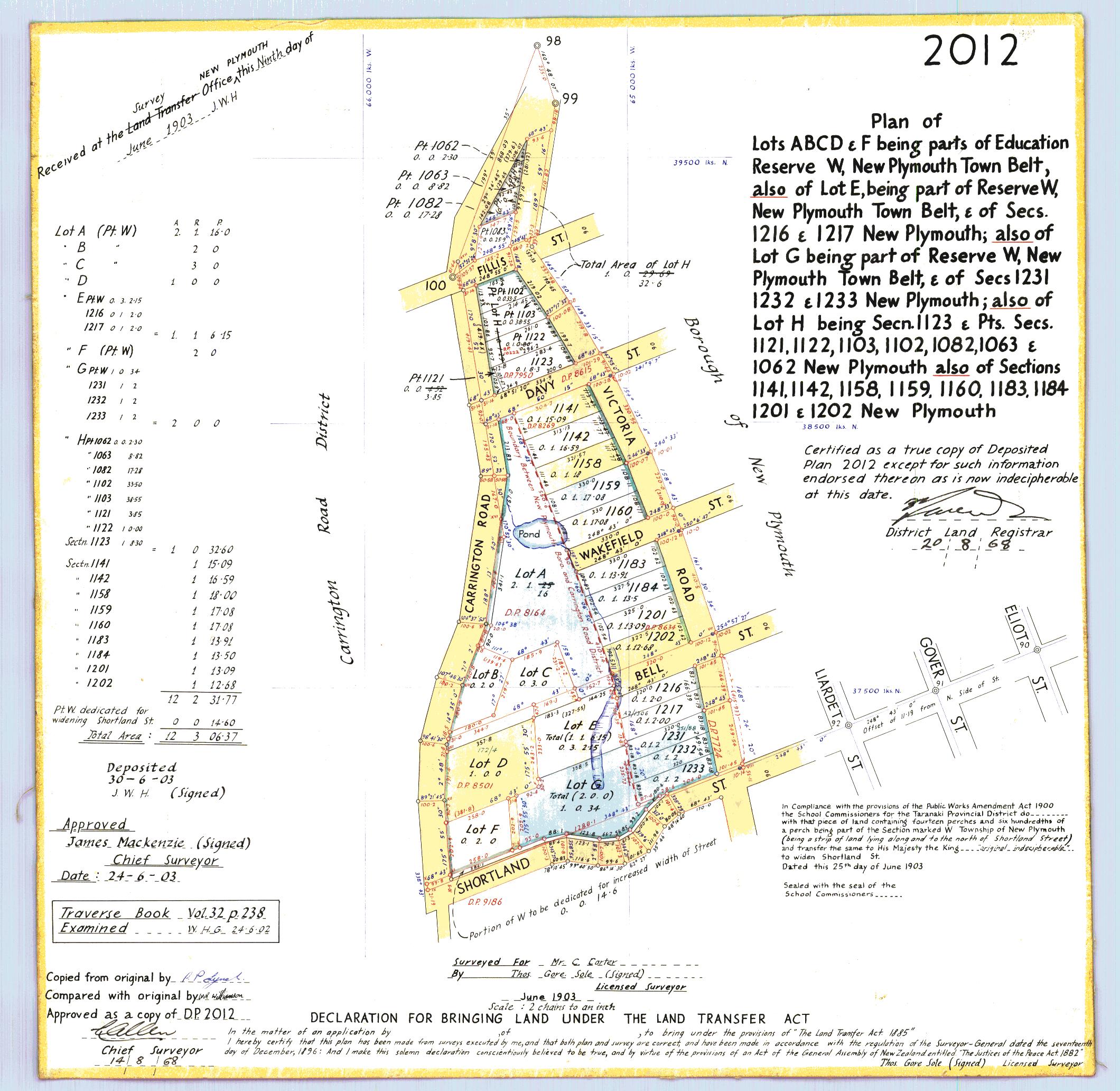 Taranaki DP2012 Sheet 1 (1903), ICS Pre 300,000 Cadastral Plan Index (Imaged by LINZ)