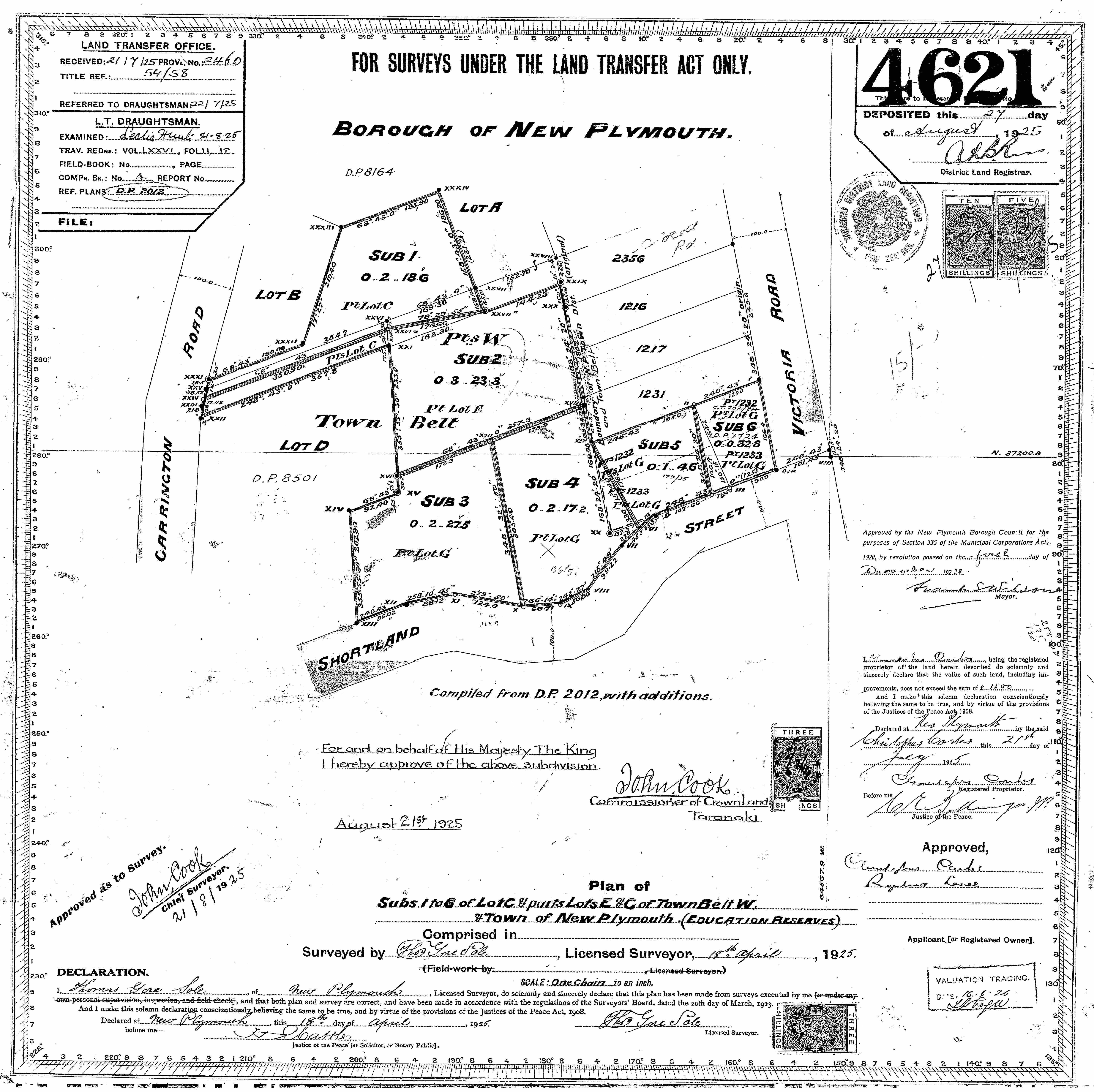 Taranaki (Lot 5) DP4621 Sheet 1 (1925), ICS Pre 300,000 Cadastral Plan Index (Imaged by LINZ)