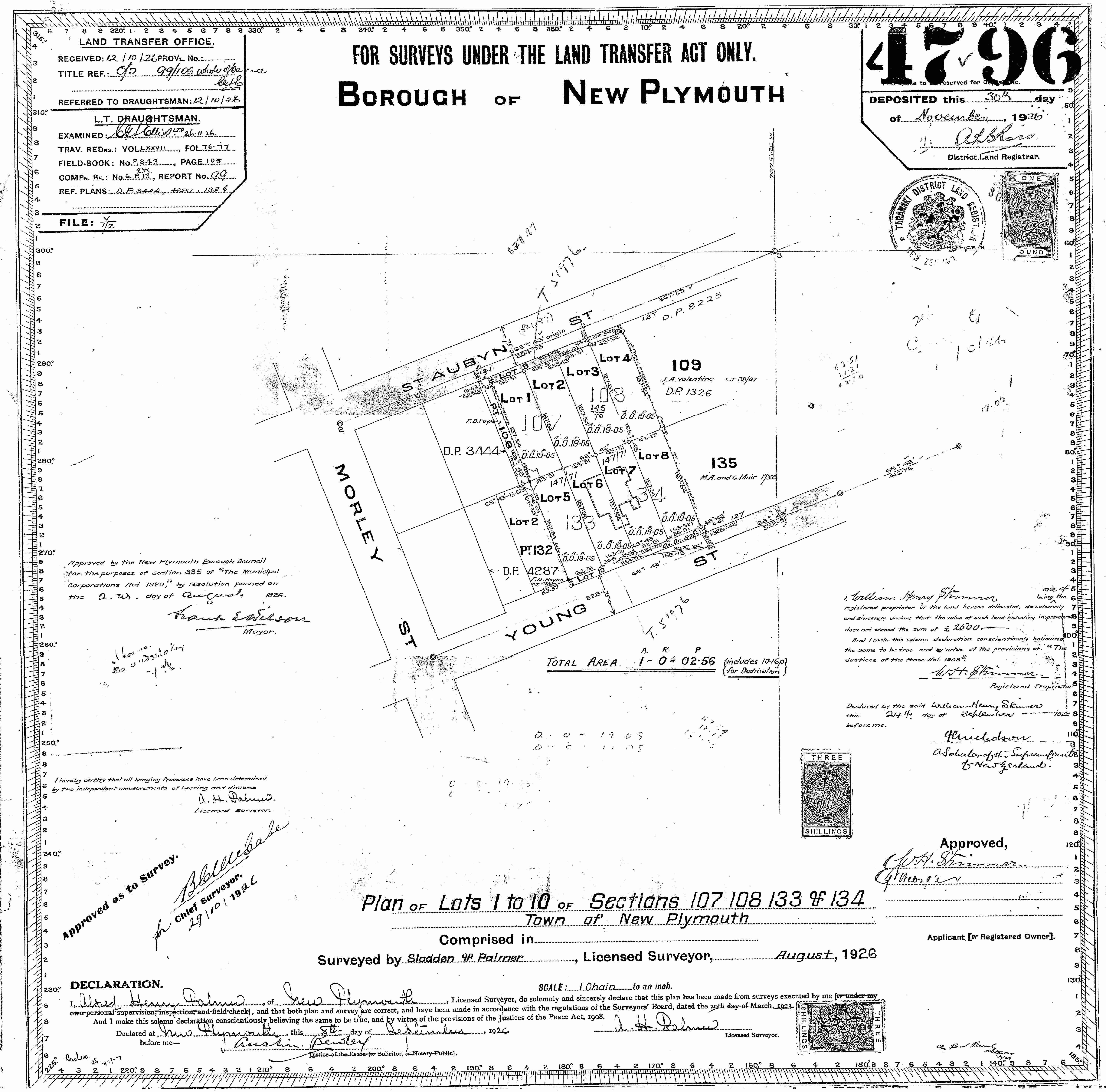 Taranaki (Lot 2) DP4796 Sheet 1 (1920), ICS Pre 300,000 Cadastral Plan Index (Imaged by LINZ)