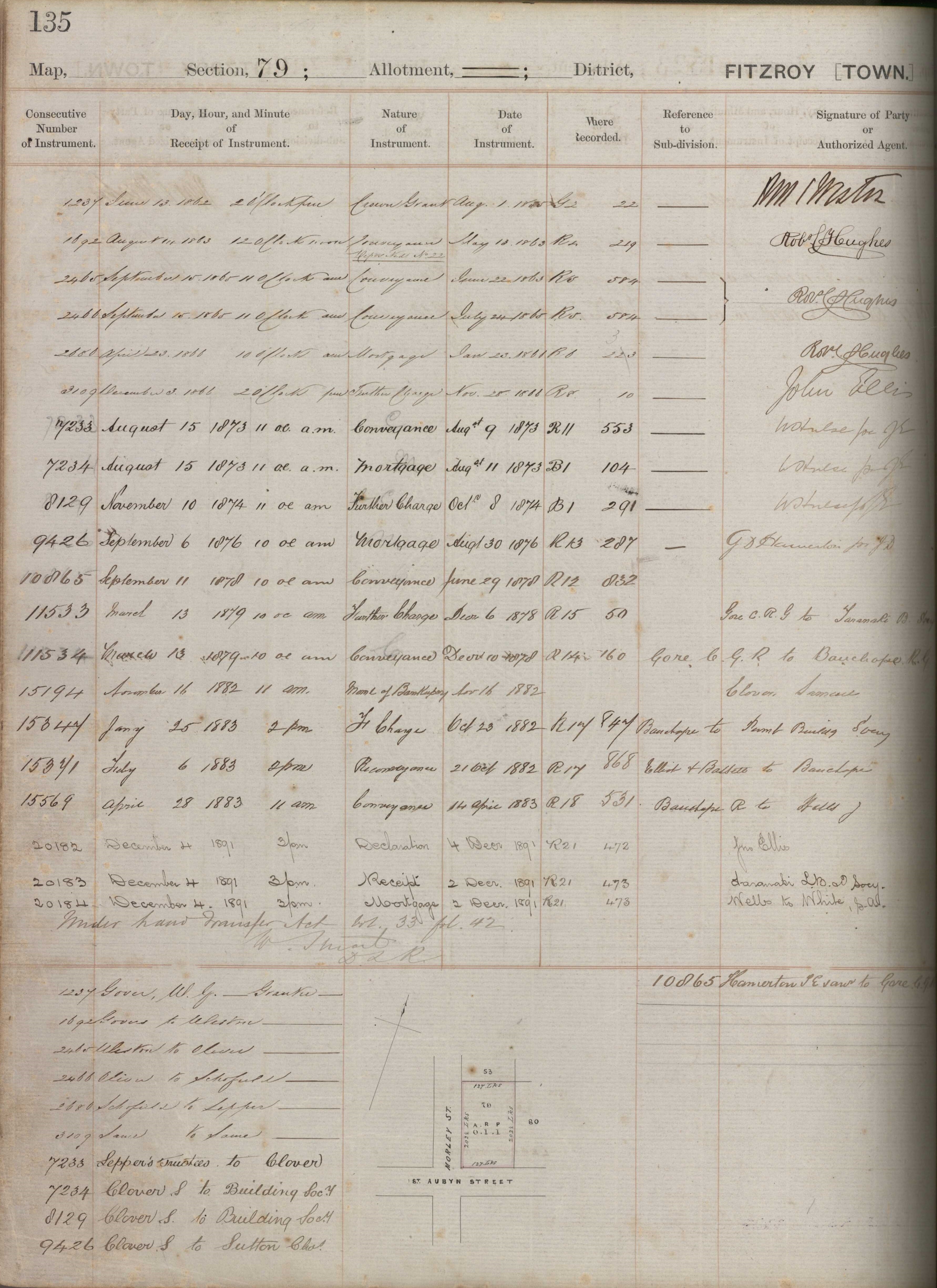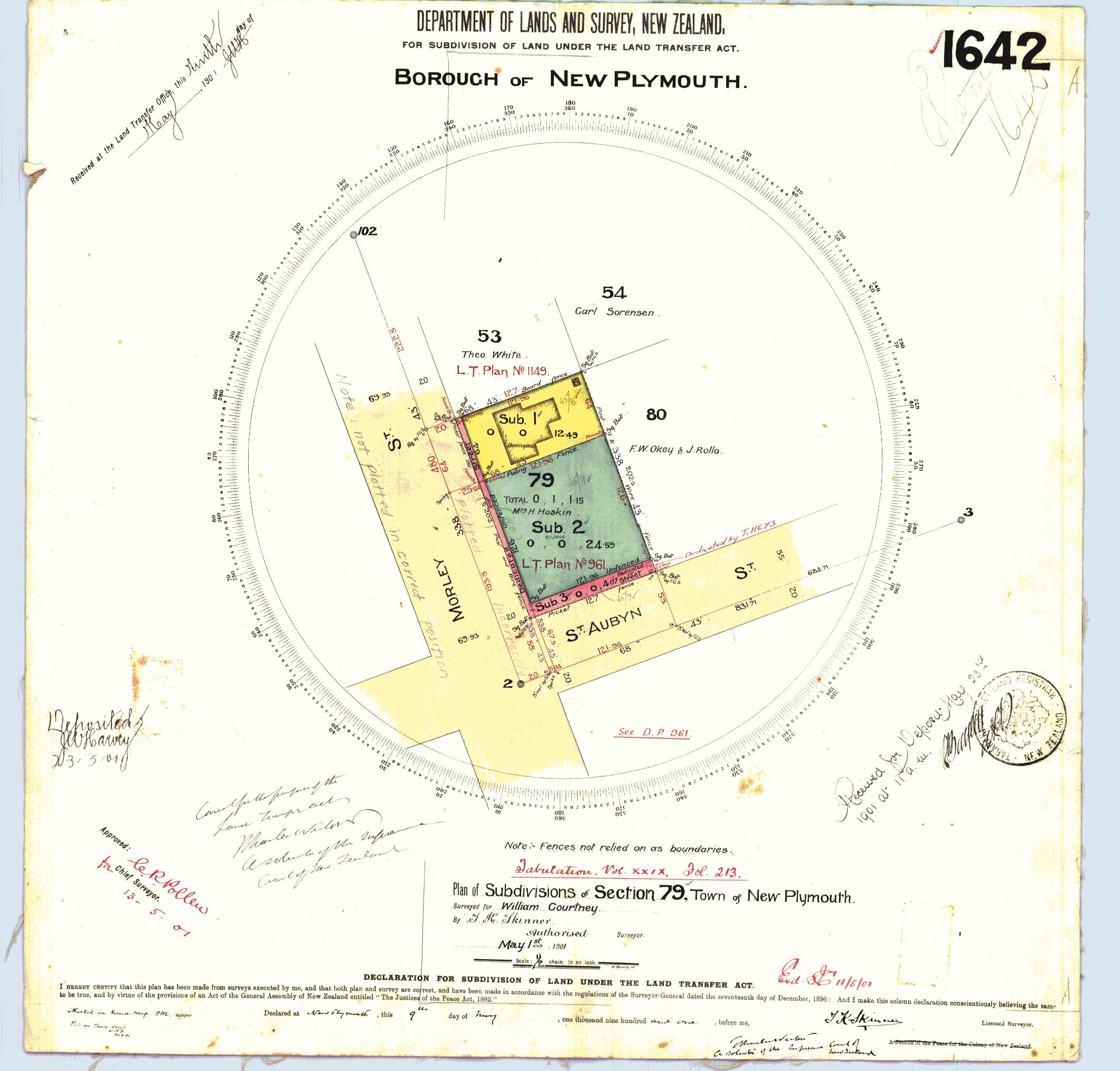 Town Section 79, Taranaki Land Deed Index I3 page 135. (Archives New Zealand)