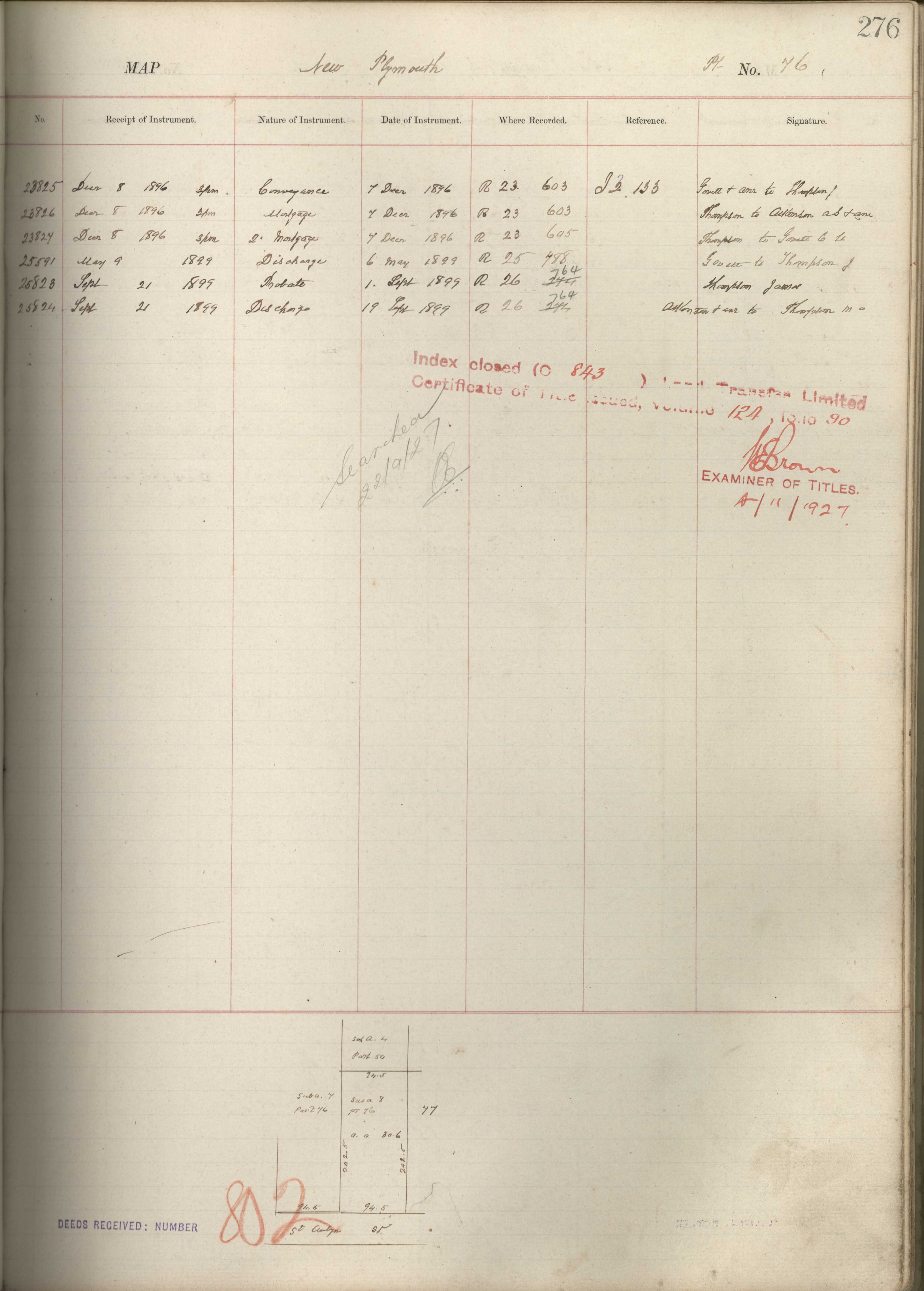 Town Section (Part) 76, Taranaki Land Deed Index I13 Page 276. (Archives New Zealand)
