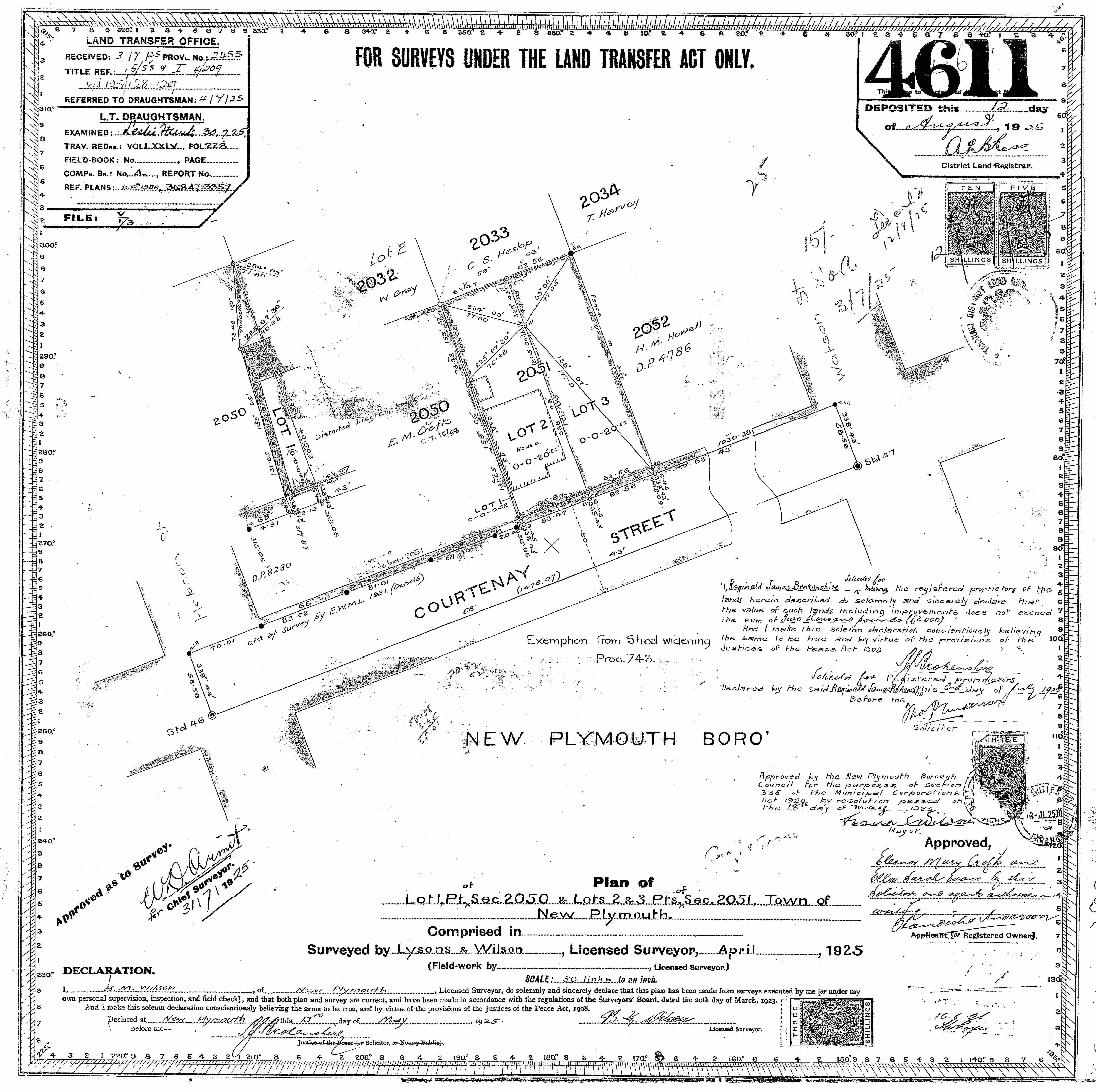 Taranaki (Lot 2) DP4611 Sheet 1 (1925), ICS Pre 300,000 Cadastral Plan Index (Imaged by LINZ)