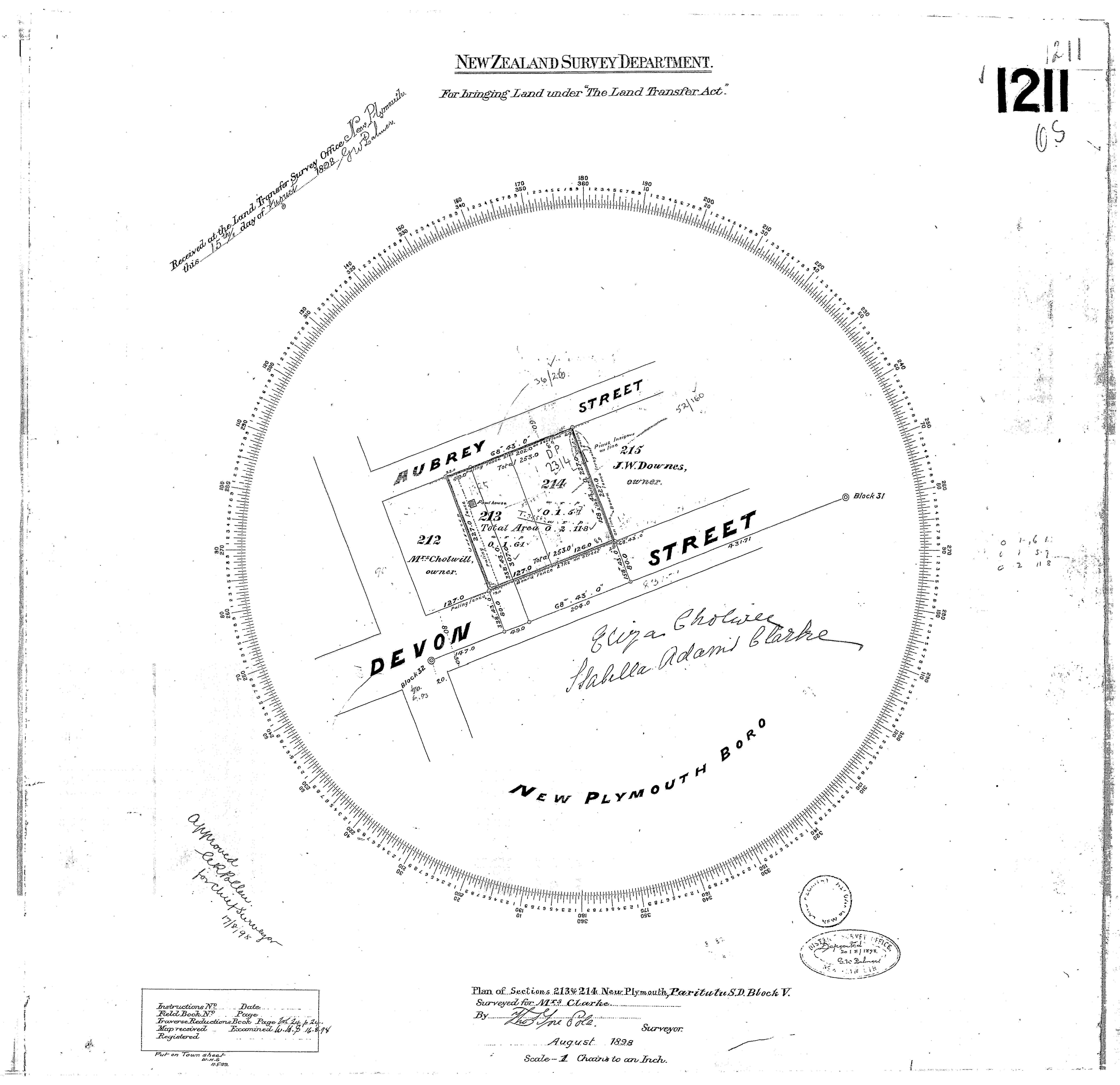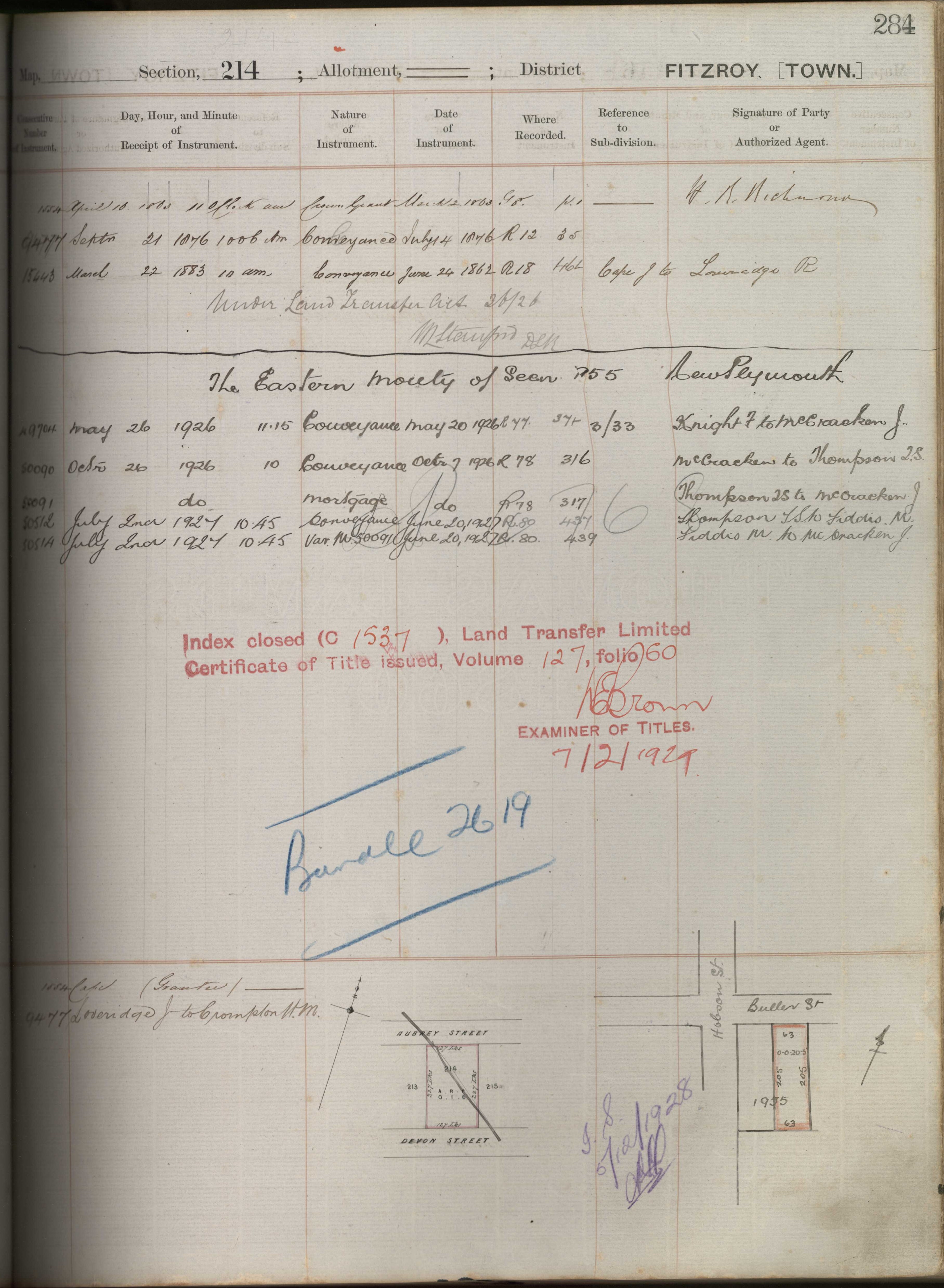 Town Section 214, Taranaki Land Deed Index I3 Page 284. (Archives New Zealand)