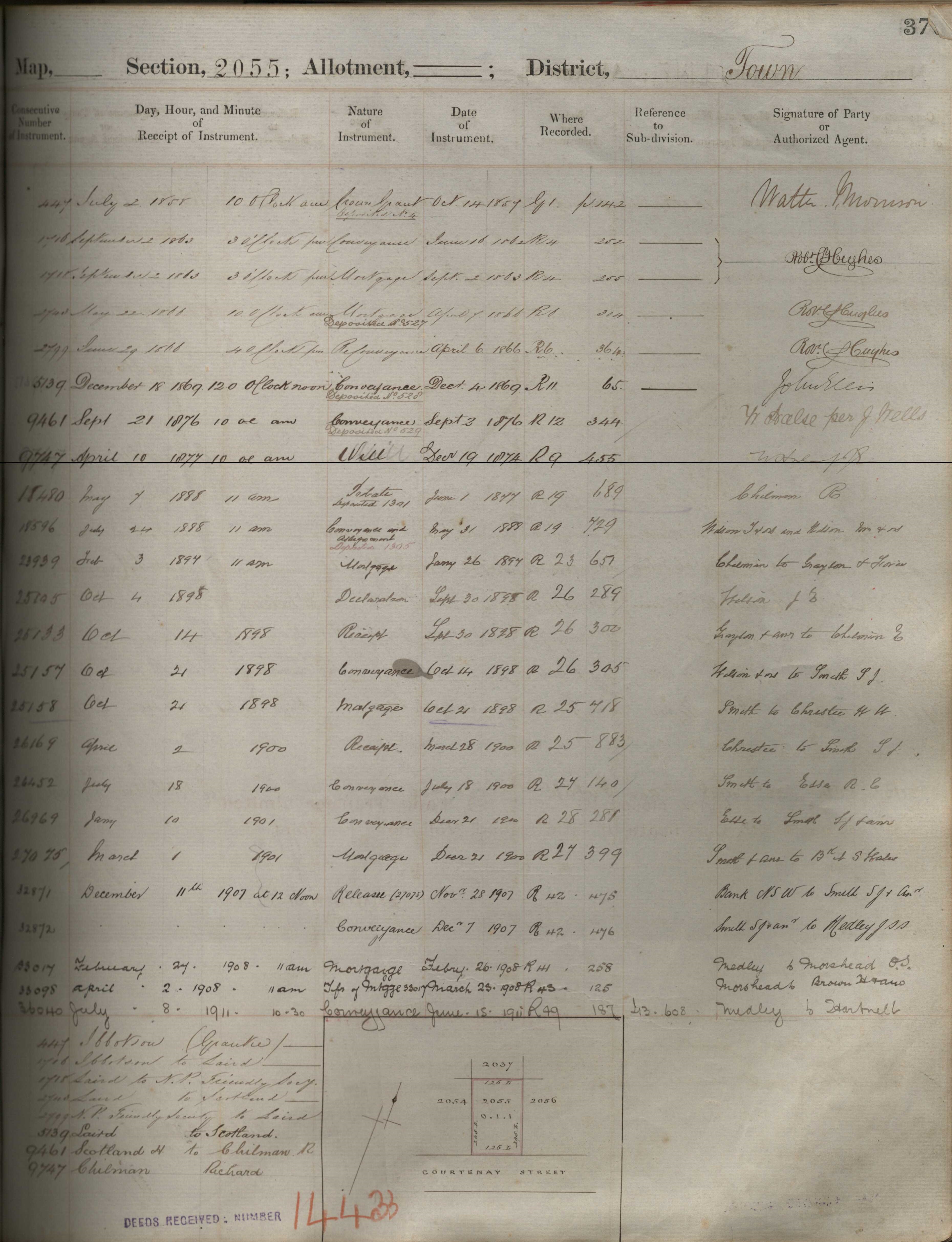Town Section 2055, Taranaki Land Deed Index I1 page 370. (Archives New Zealand)