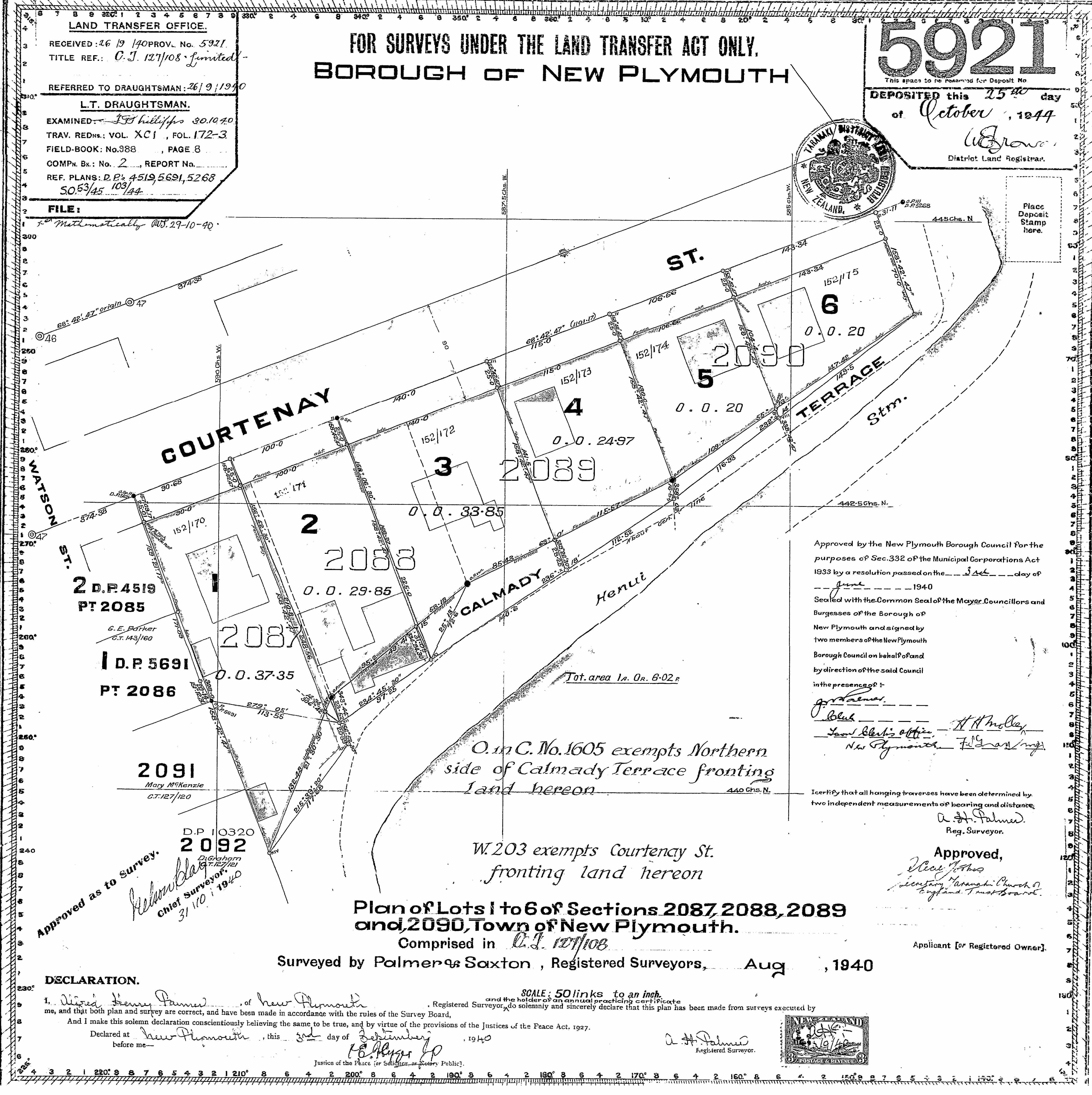 Taranaki DP5921 Sheet 1 (1940), ICS Pre 300,000 Cadastral Plan Index (Imaged by LINZ)