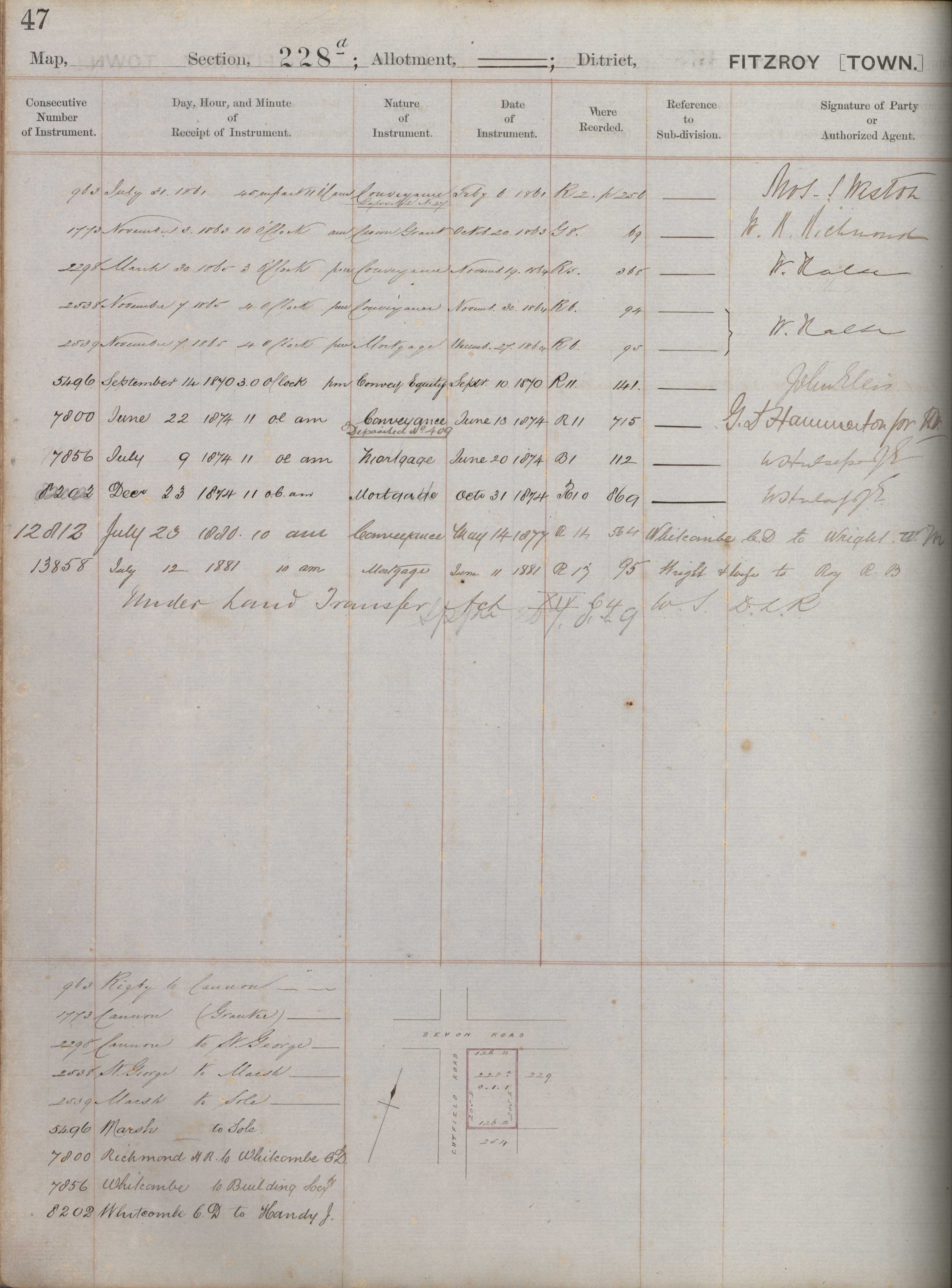 Town Section 228A, Taranaki Land Deed Index I3 Page 47. (Archives New Zealand)