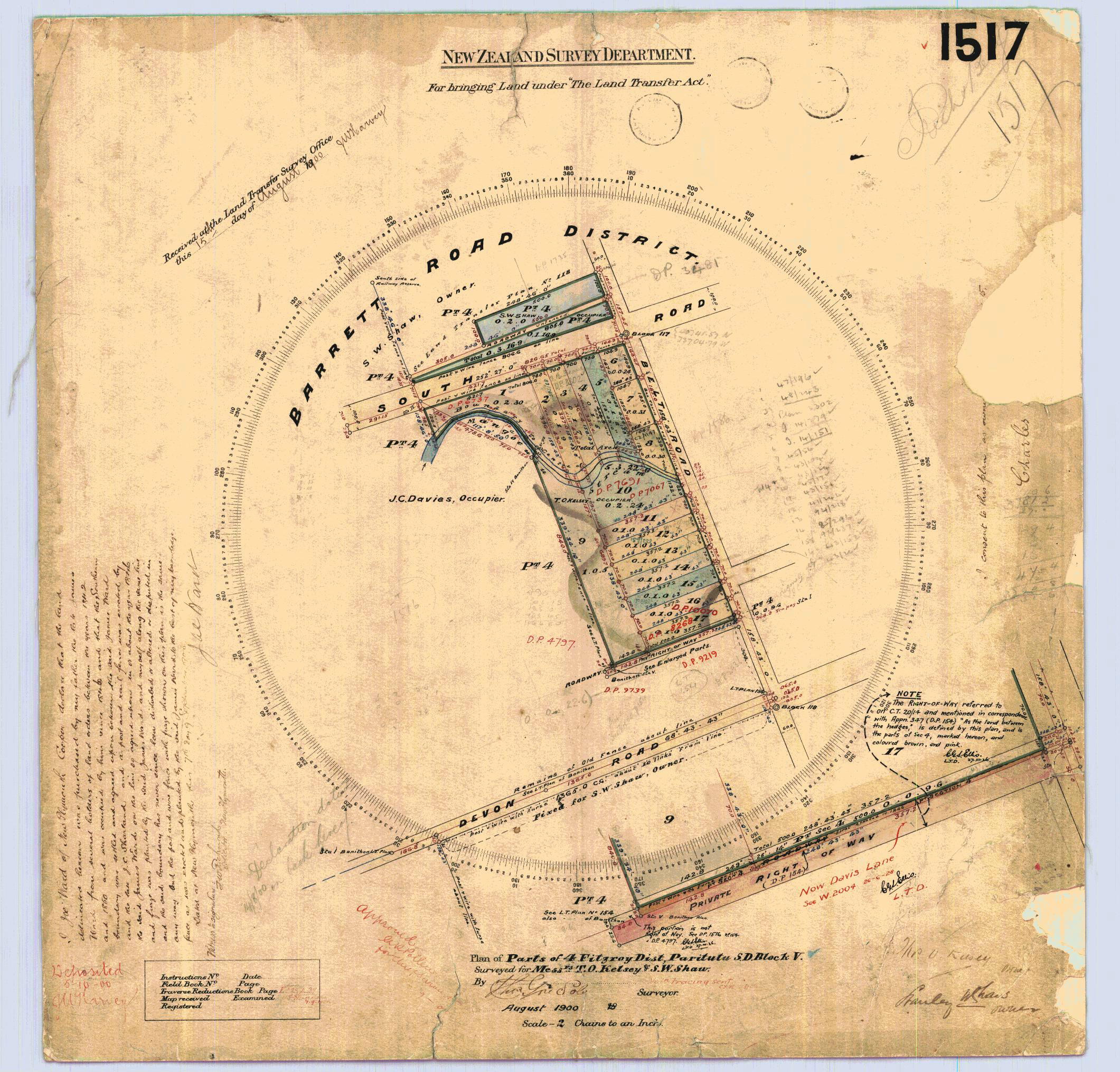 Taranaki DP1517 Sheet 1 (1900), ICS Pre 300,000 Cadastral Plan Index (Imaged by LINZ)
