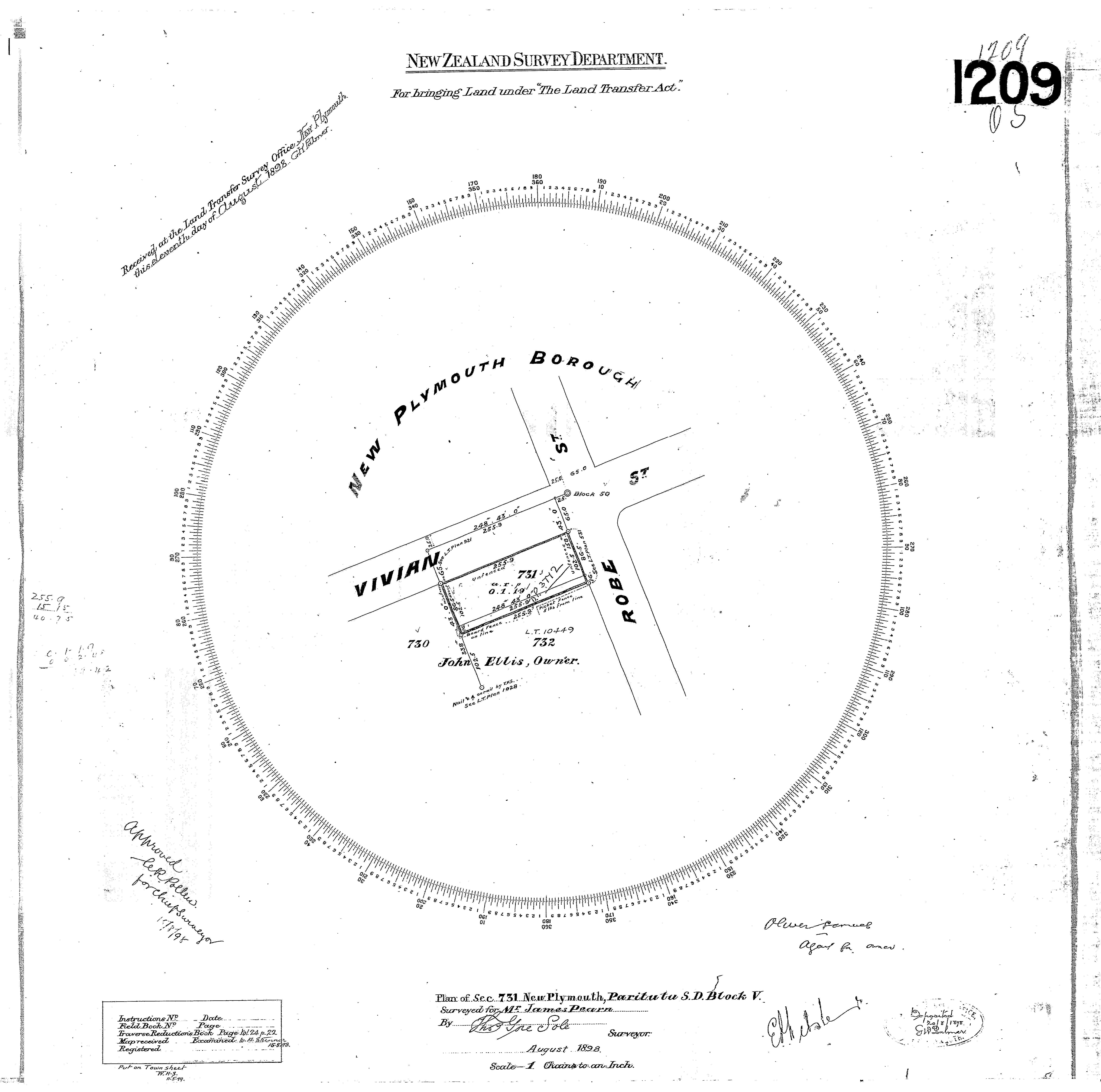 Taranaki DP1209 Sheet 1 (1898), ICS Pre 300,000 Cadastral Plan Index (Imaged by LINZ)