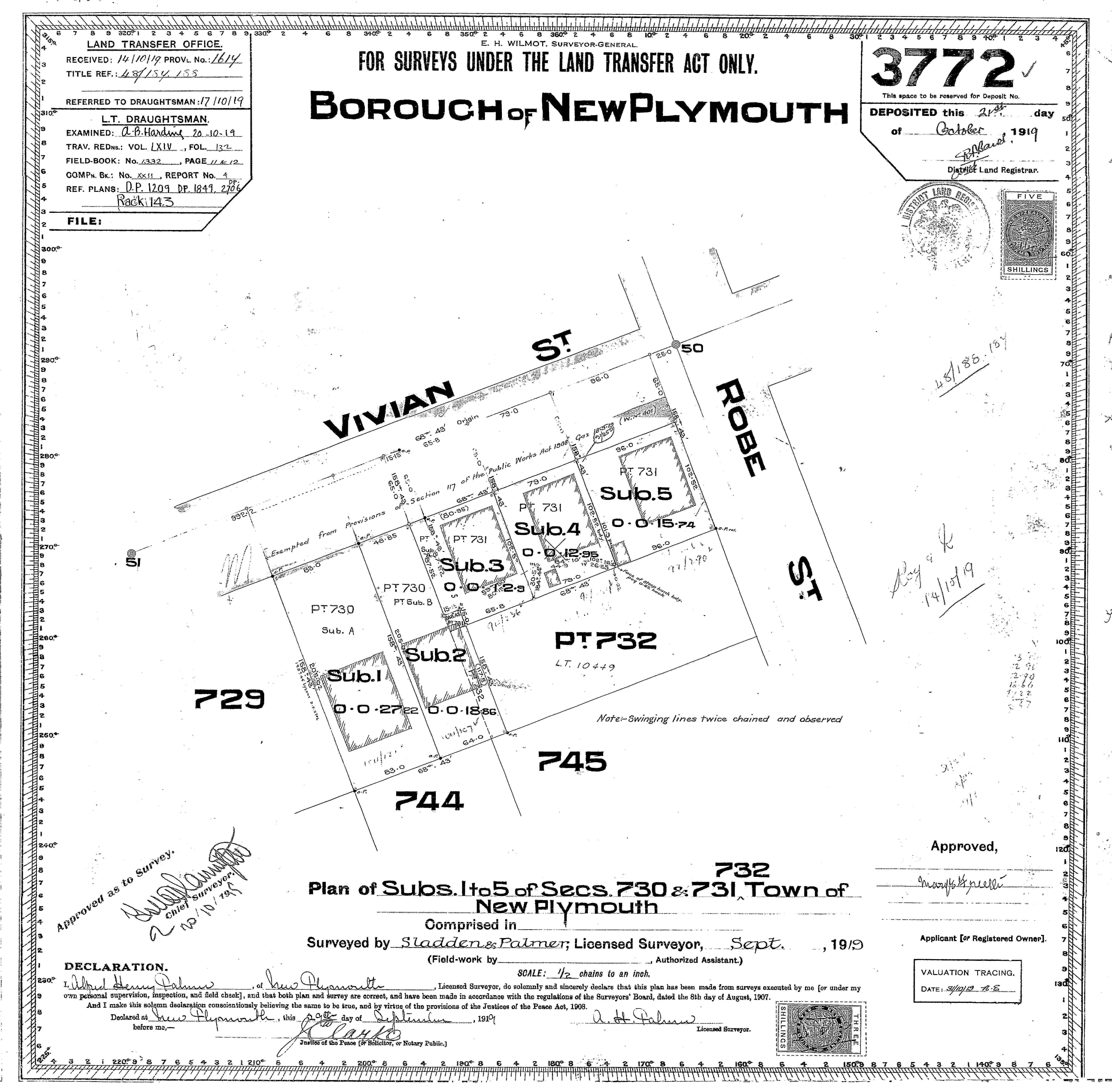 Taranaki (Sub 4) DP3772 Sheet 1 (1919), ICS Pre 300,000 Cadastral Plan Index (Imaged by LINZ)