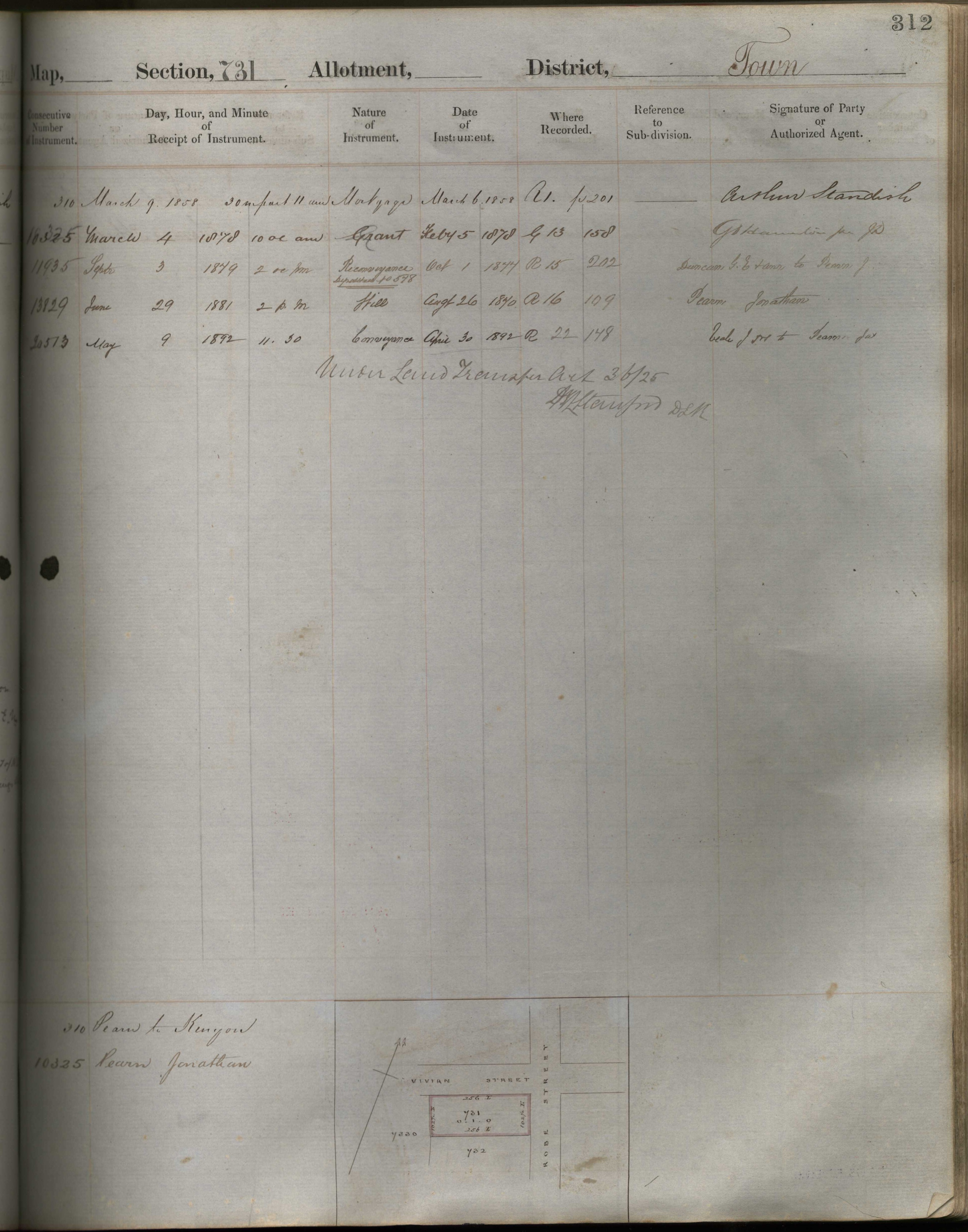 Town Section 731, Taranaki Land Deed Index I1 Page 312. (Archives New Zealand)