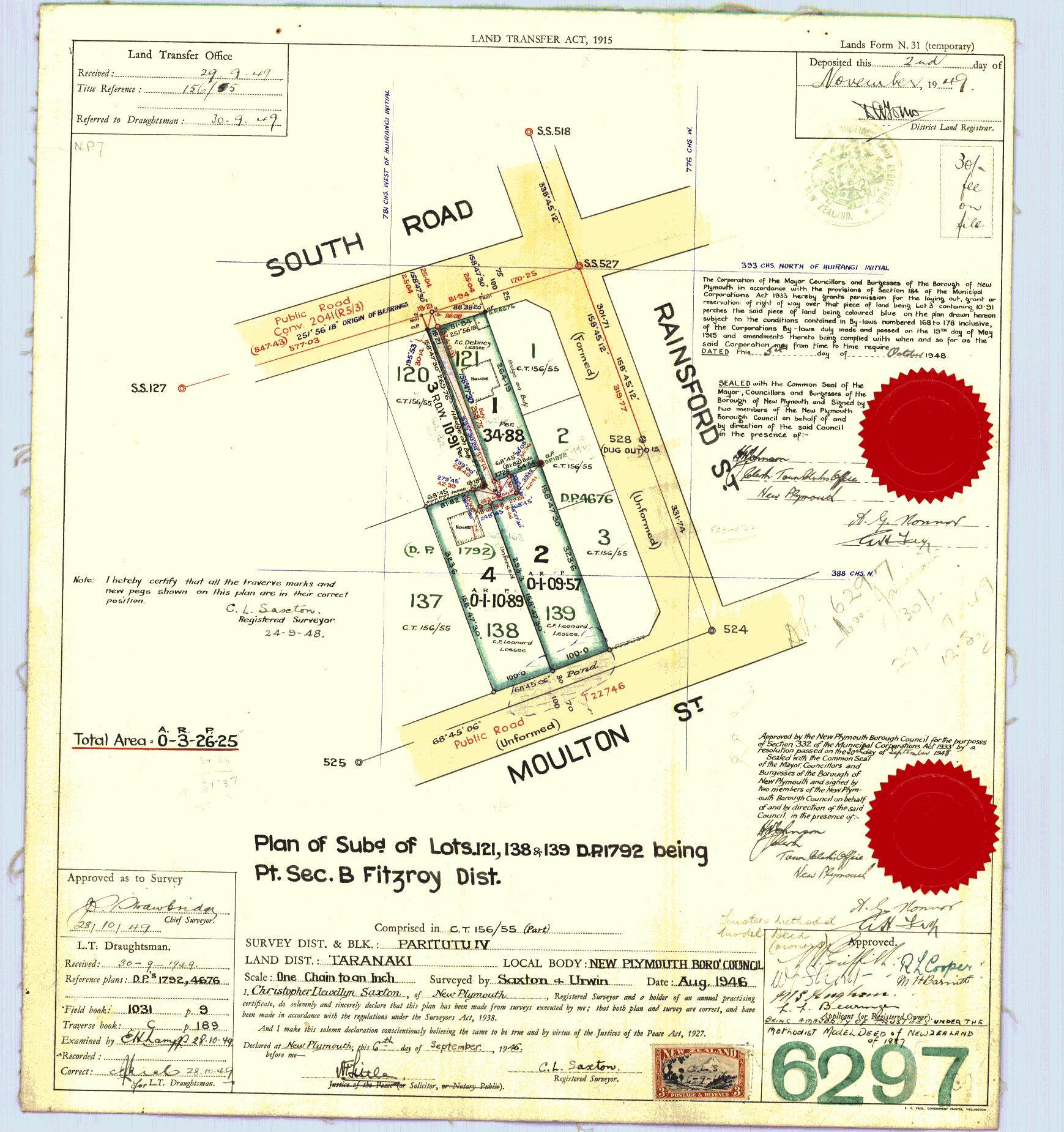 Taranaki (Lot 1) DP6297 Sheet 1 (1946), ICS Pre 300,000 Cadastral Plan Index (Imaged by LINZ)