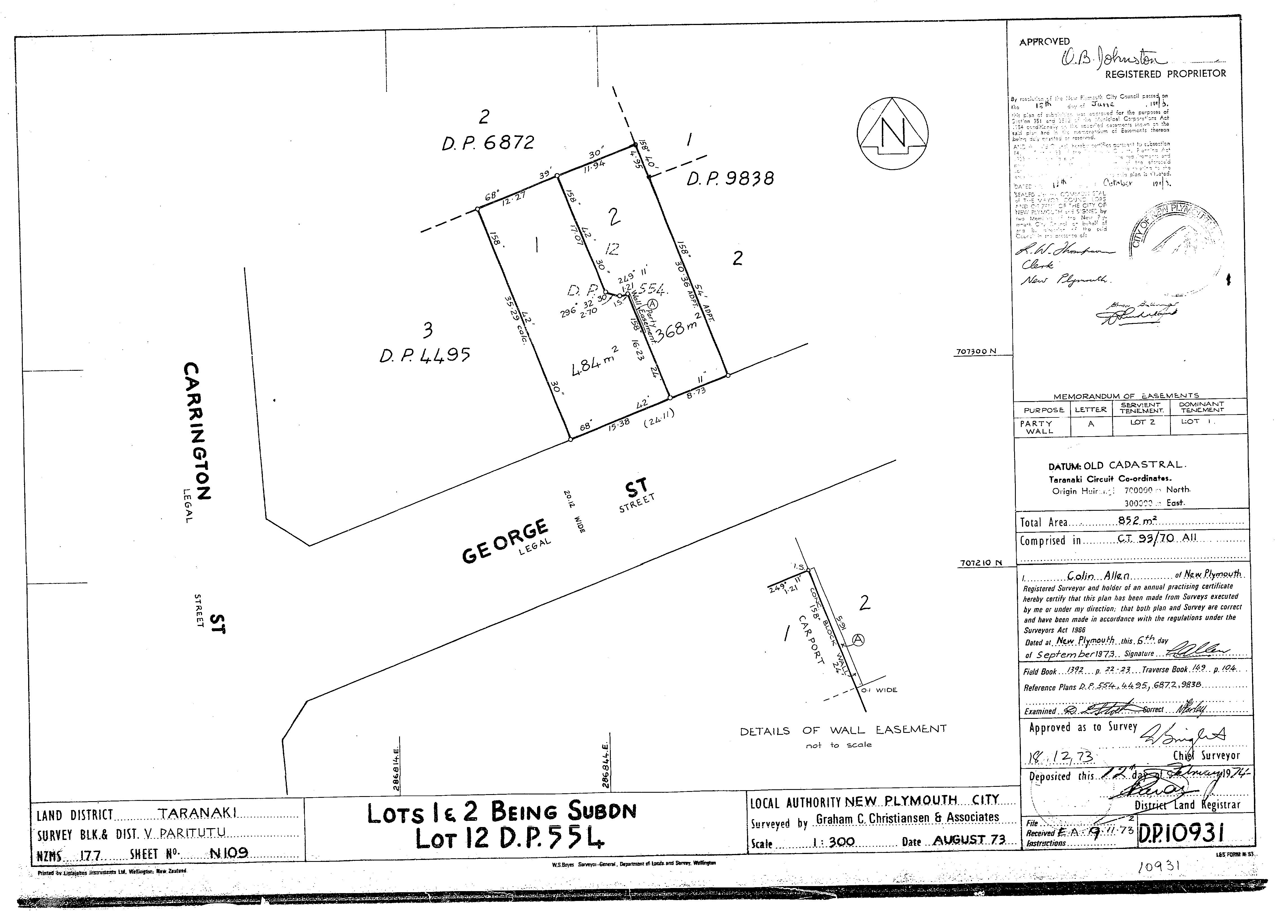 Taranaki (Lot 1) DP10931 Sheet 1 (1973), ICS Pre 300,000 Cadastral Plan Index (Imaged by LINZ)