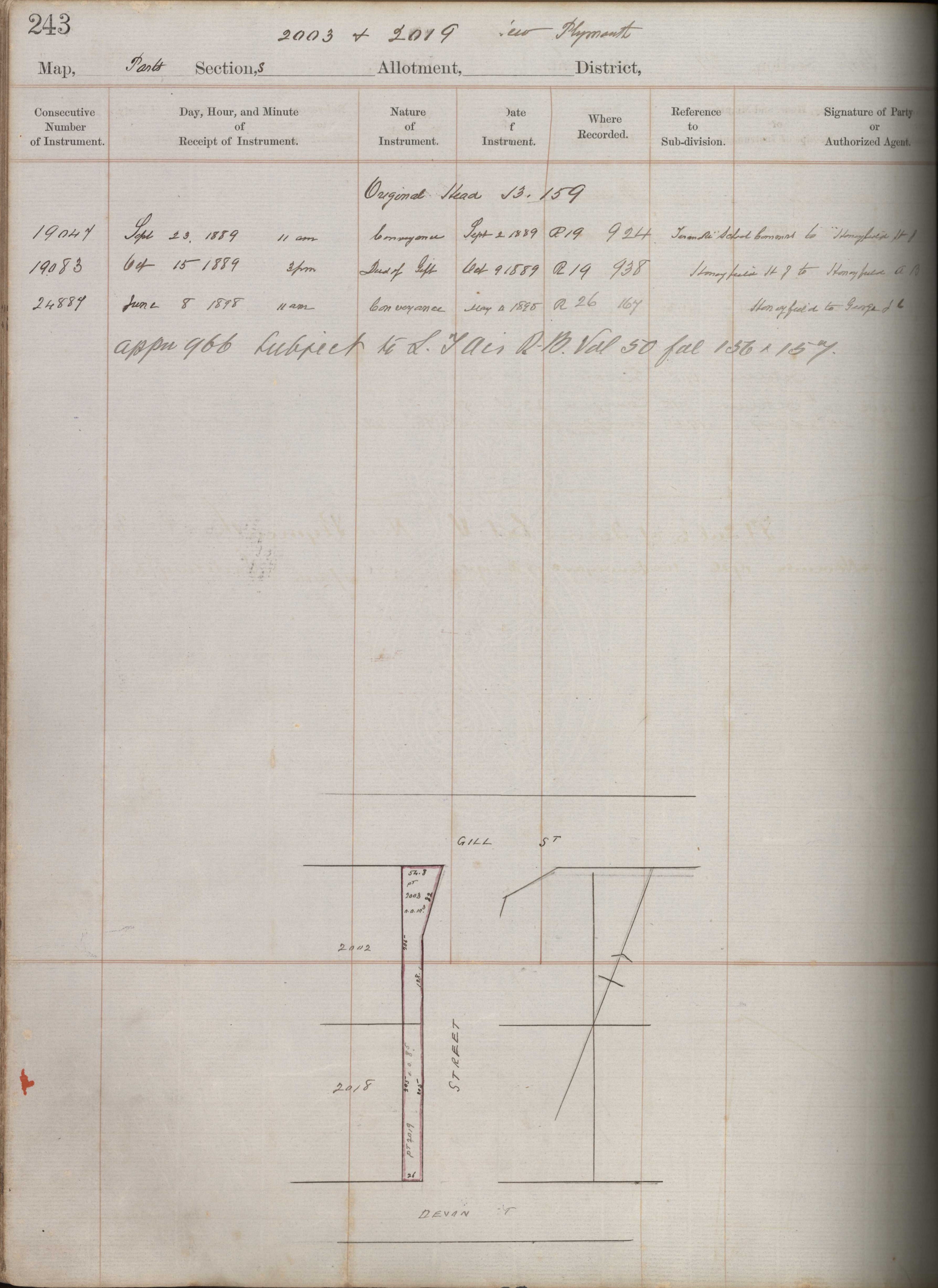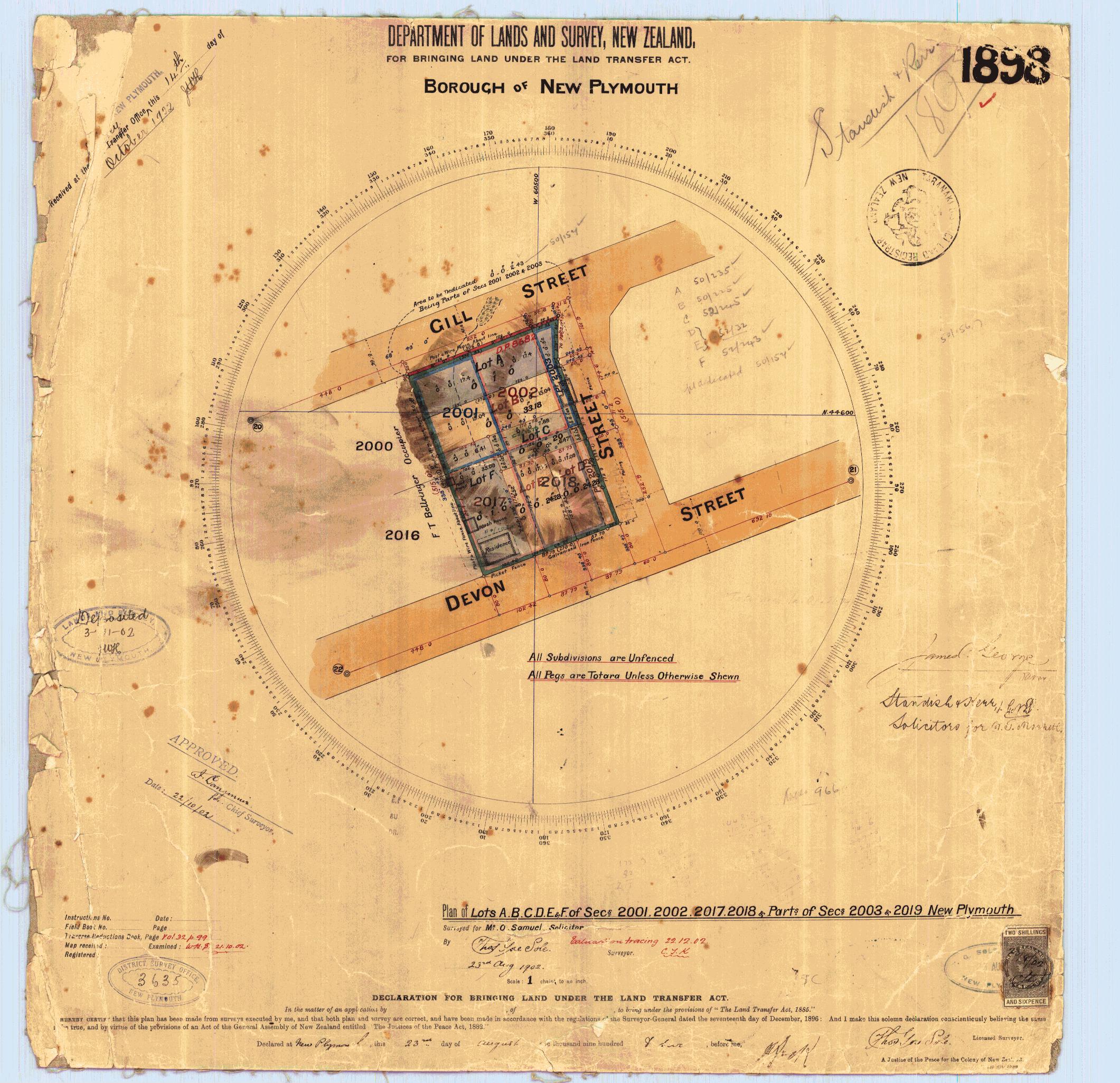 Town Section 2003 And 2019, Taranaki Land Deed Index I4 Page 243. (Archives New Zealand)