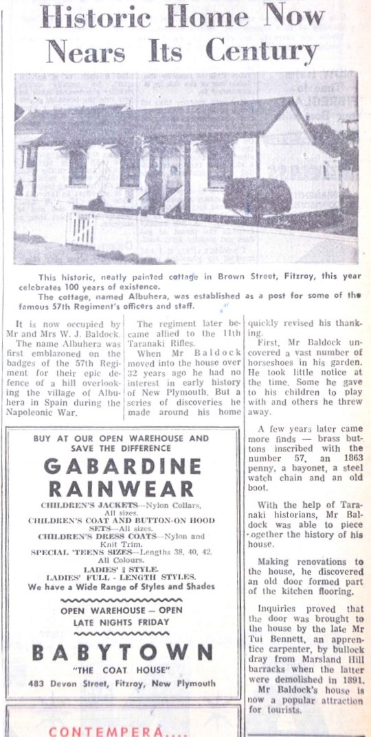 This small cottage was removed from its site on Brown Street in 1991 after a debate as to whether it should be purchased and restored by the New Plymouth District Council.