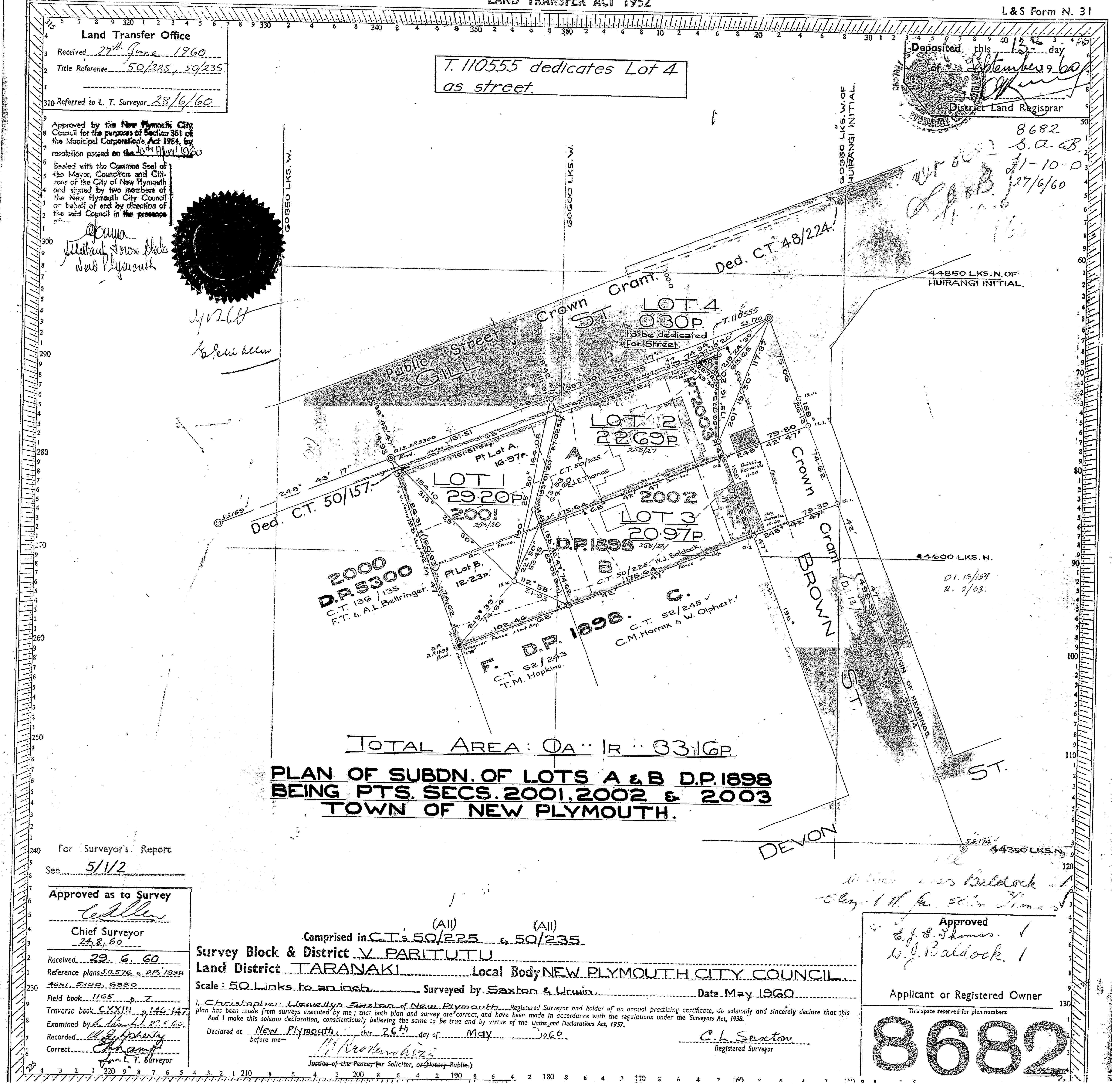 Taranaki DP8682 Sheet 1 (1960), ICS Pre 300,000 Cadastral Plan Index (Imaged by LINZ)