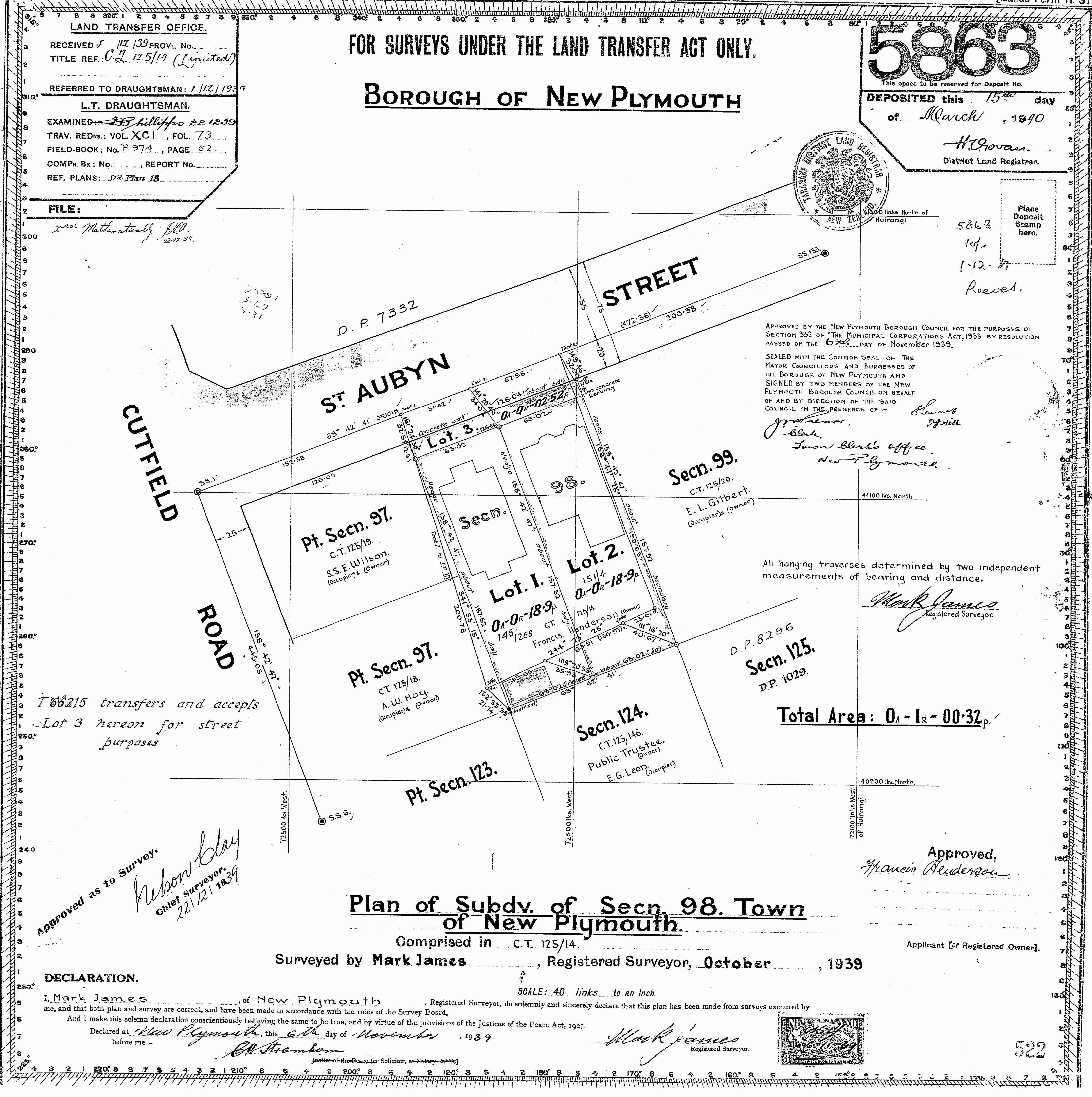 Taranaki (Lot 2) DP5863 Sheet 1 (1939), ICS Pre 300,000 Cadastral Plan Index (Imaged by LINZ)