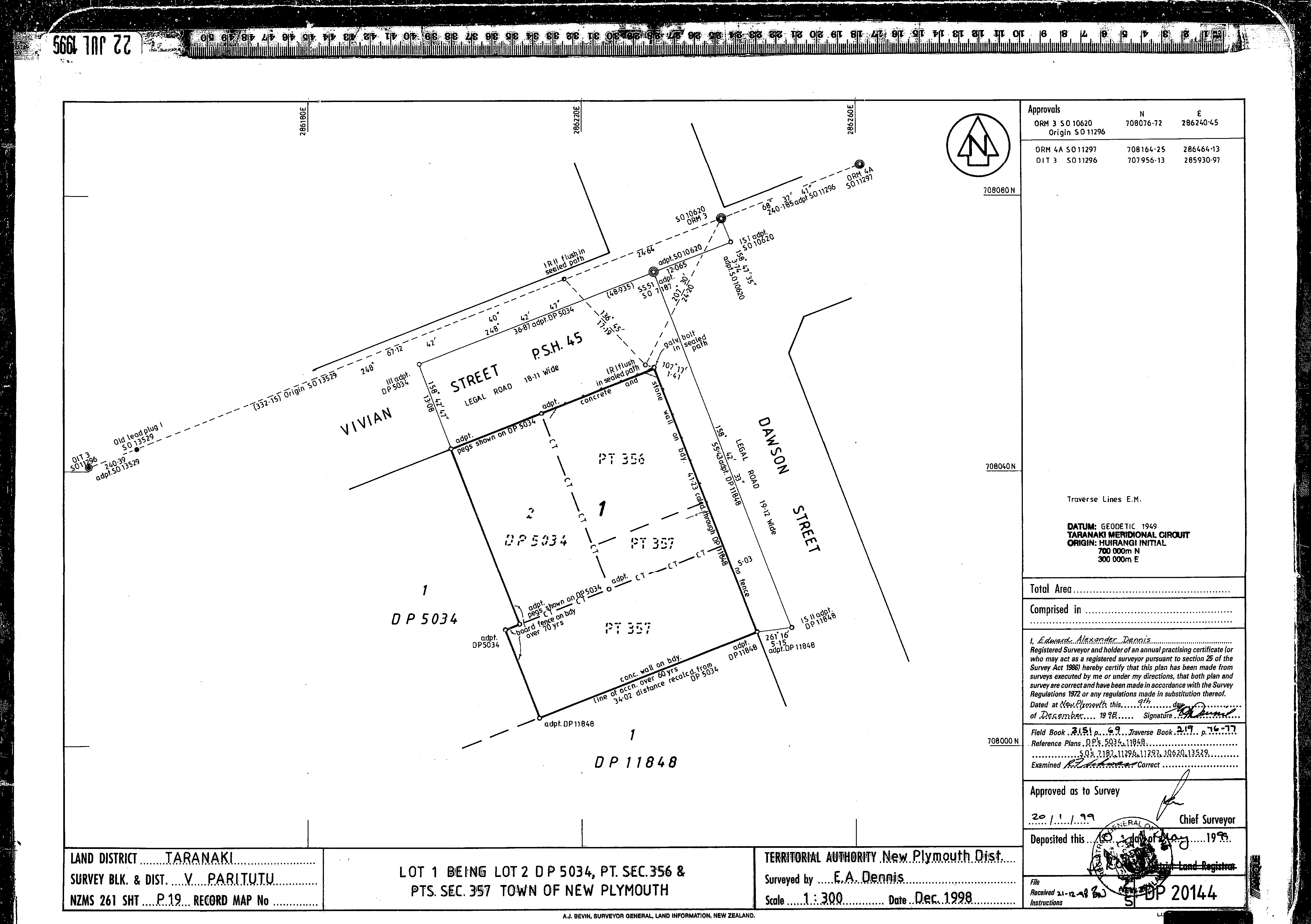 Taranaki (Lot 1) DP20144 Sheet 1 (1998), ICS Pre 300,000 Cadastral Plan Index (Imaged by LINZ)