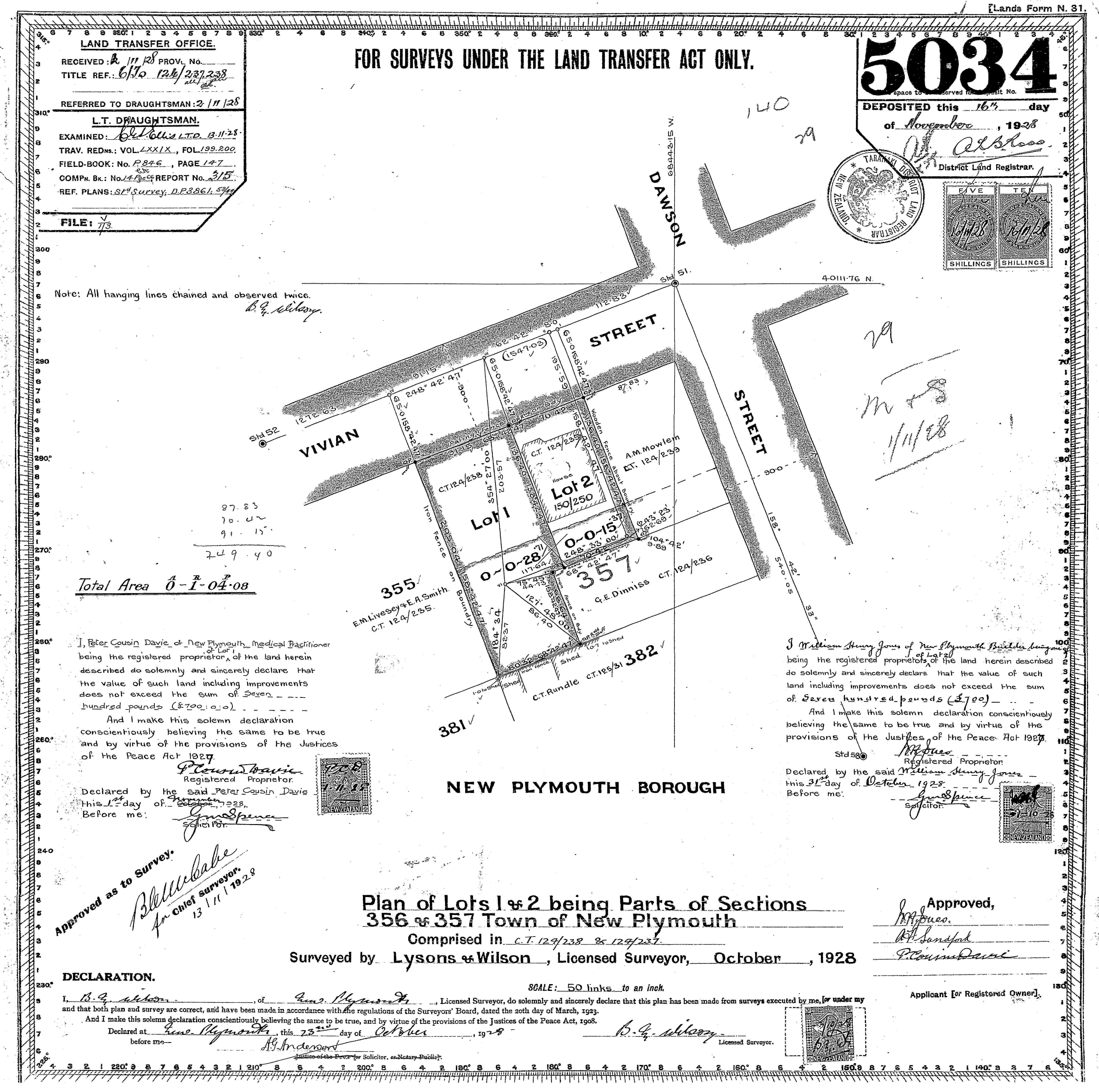 Taranaki DP5034 Sheet 1 (1928), ICS Pre 300,000 Cadastral Plan Index (Imaged by LINZ)