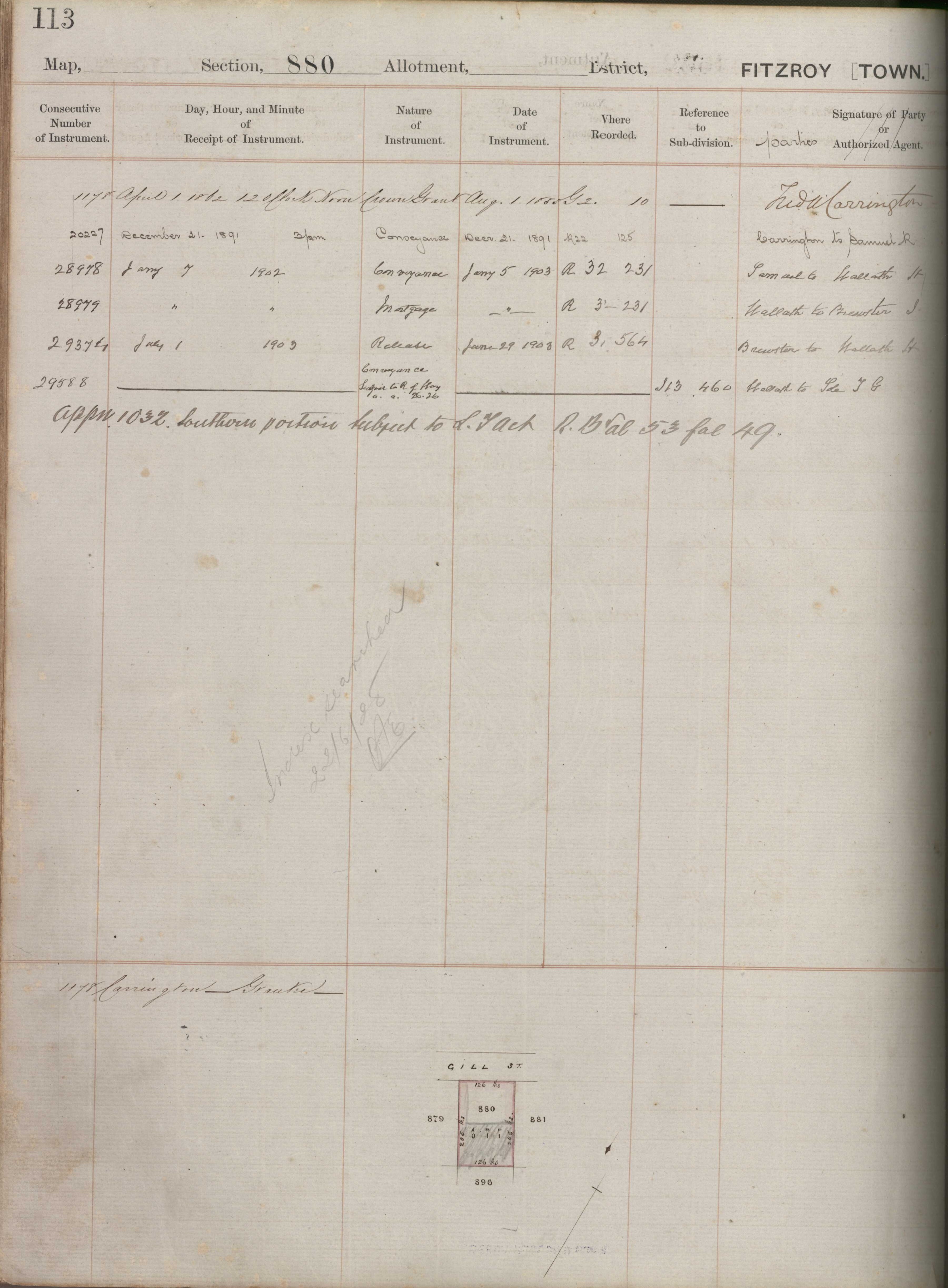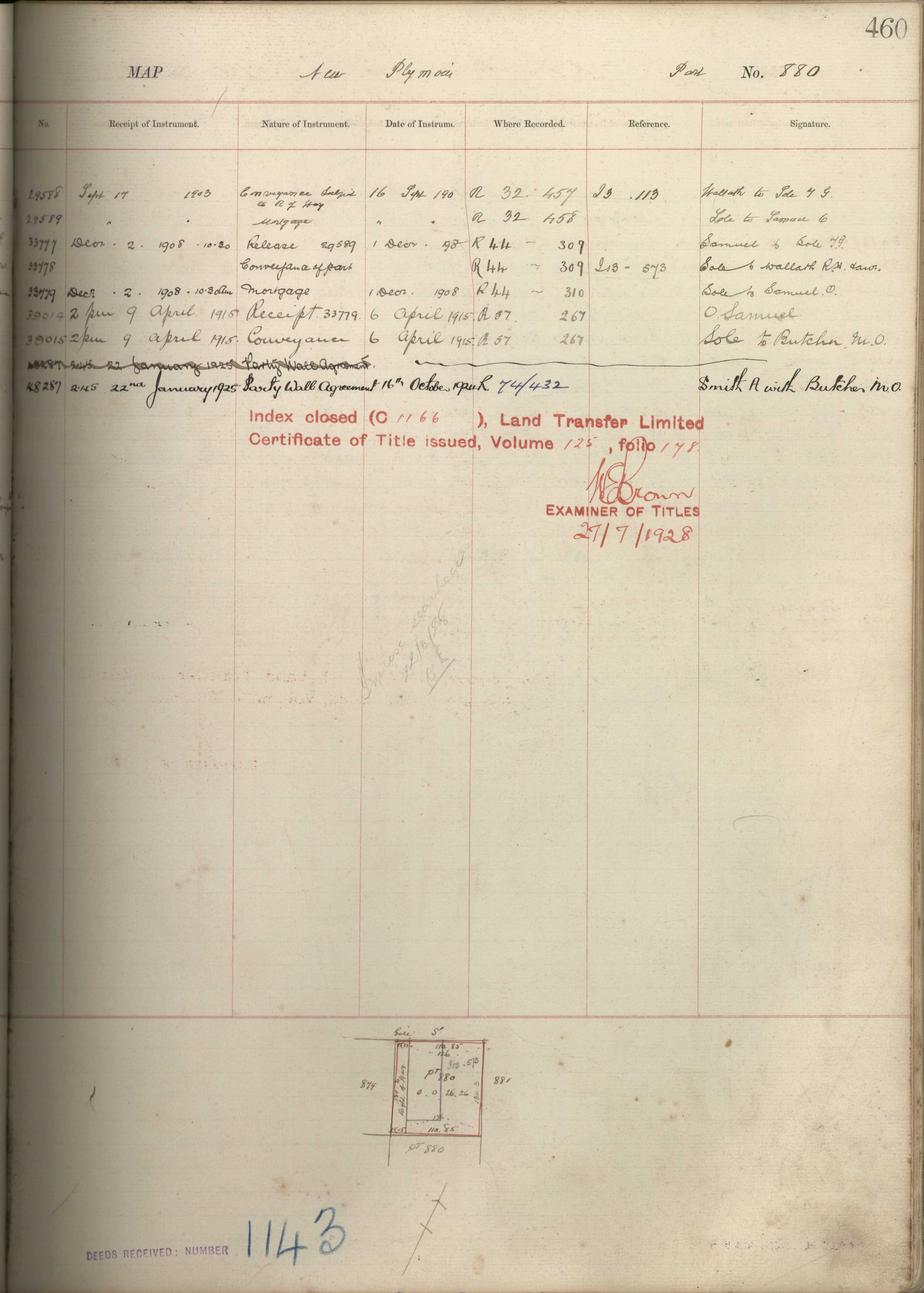 Town Section 880, Taranaki Land Deed Index I13 page 460 and I13 page 460. (Archives New Zealand)