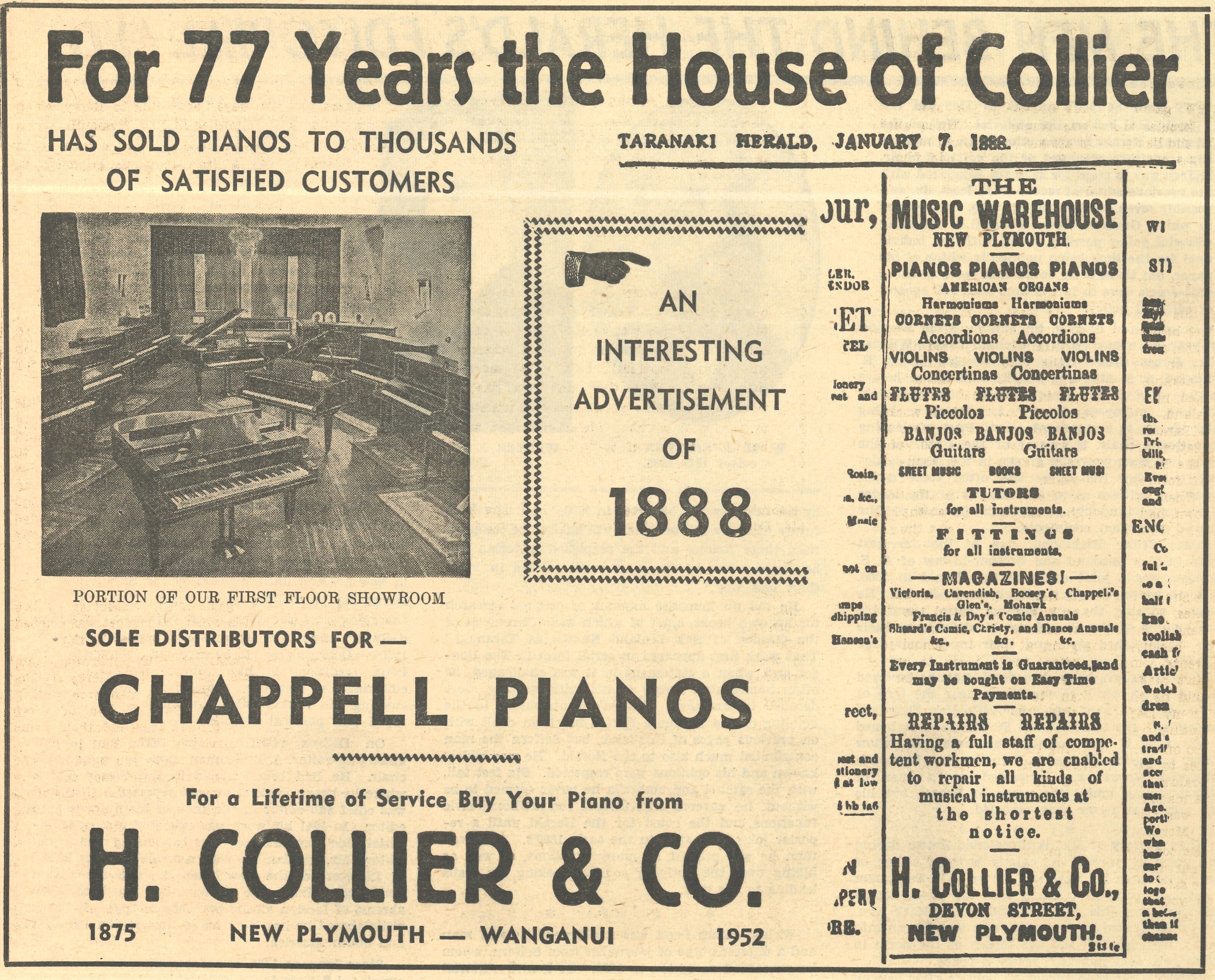 For 77 years the House of Collier has sold pianos (Taranaki Herald Centennial Issue 1852-1952)