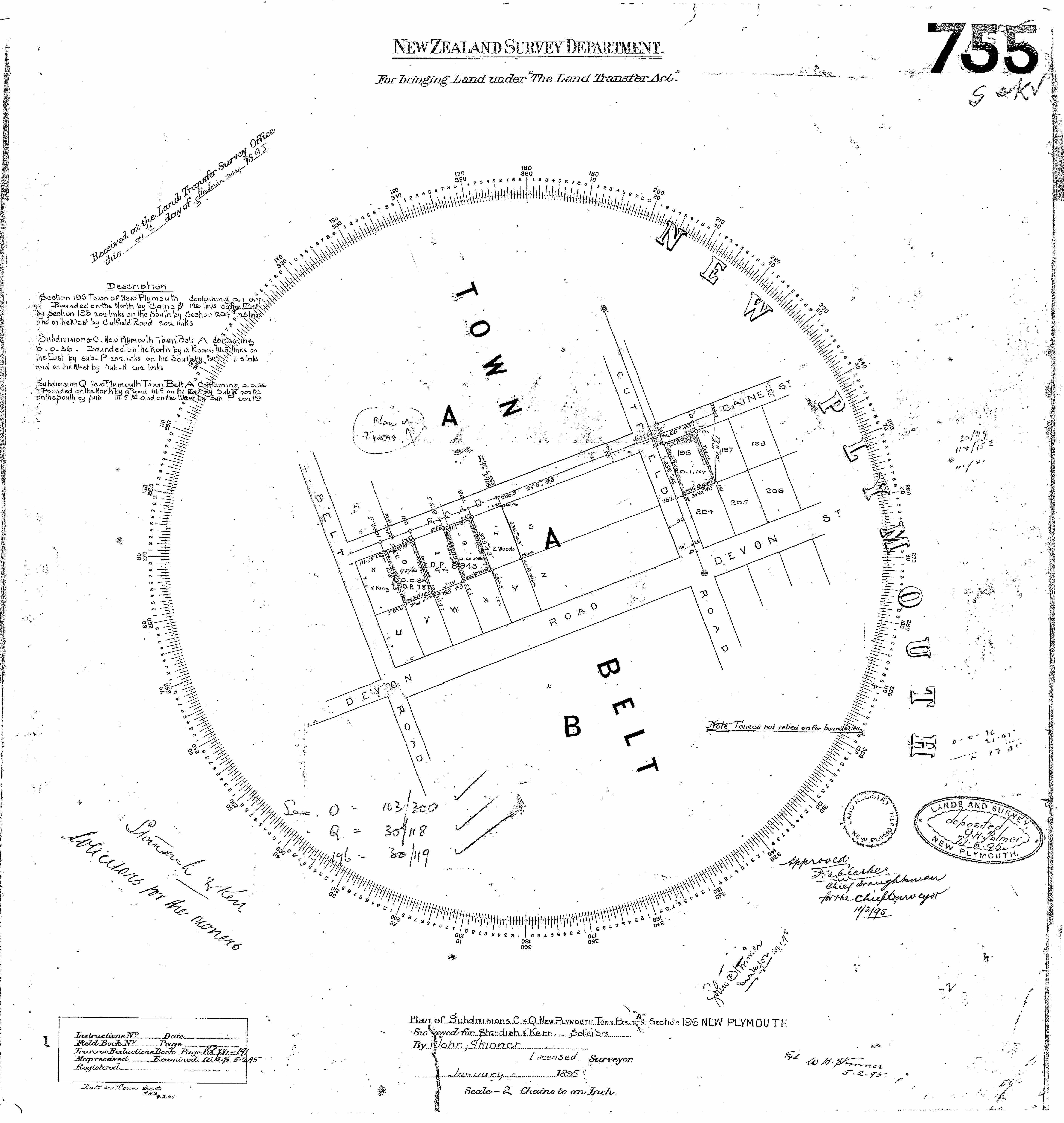 Taranaki (Part Lot Q) DP755 Sheet 1 (1895), ICS Pre 300,000 Cadastral Plan Index (Imaged by LINZ)