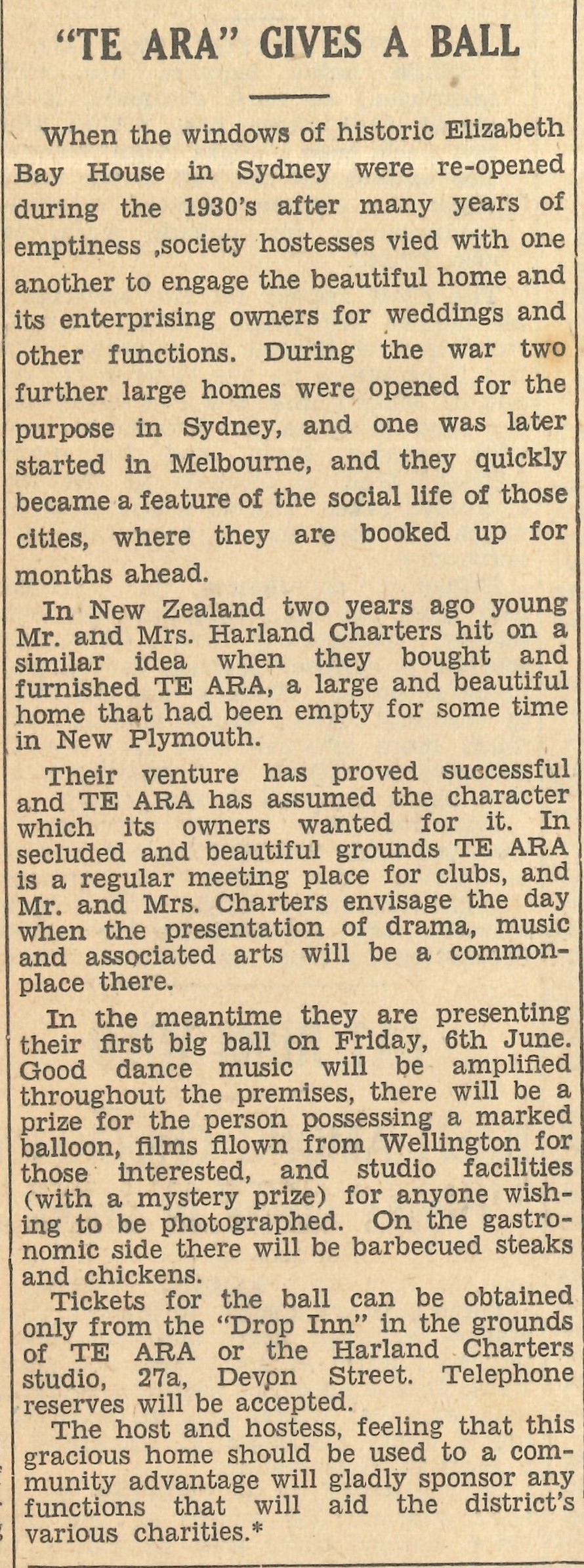 "Te Ara" gives a ball (undated Taranaki newspaper c1947)