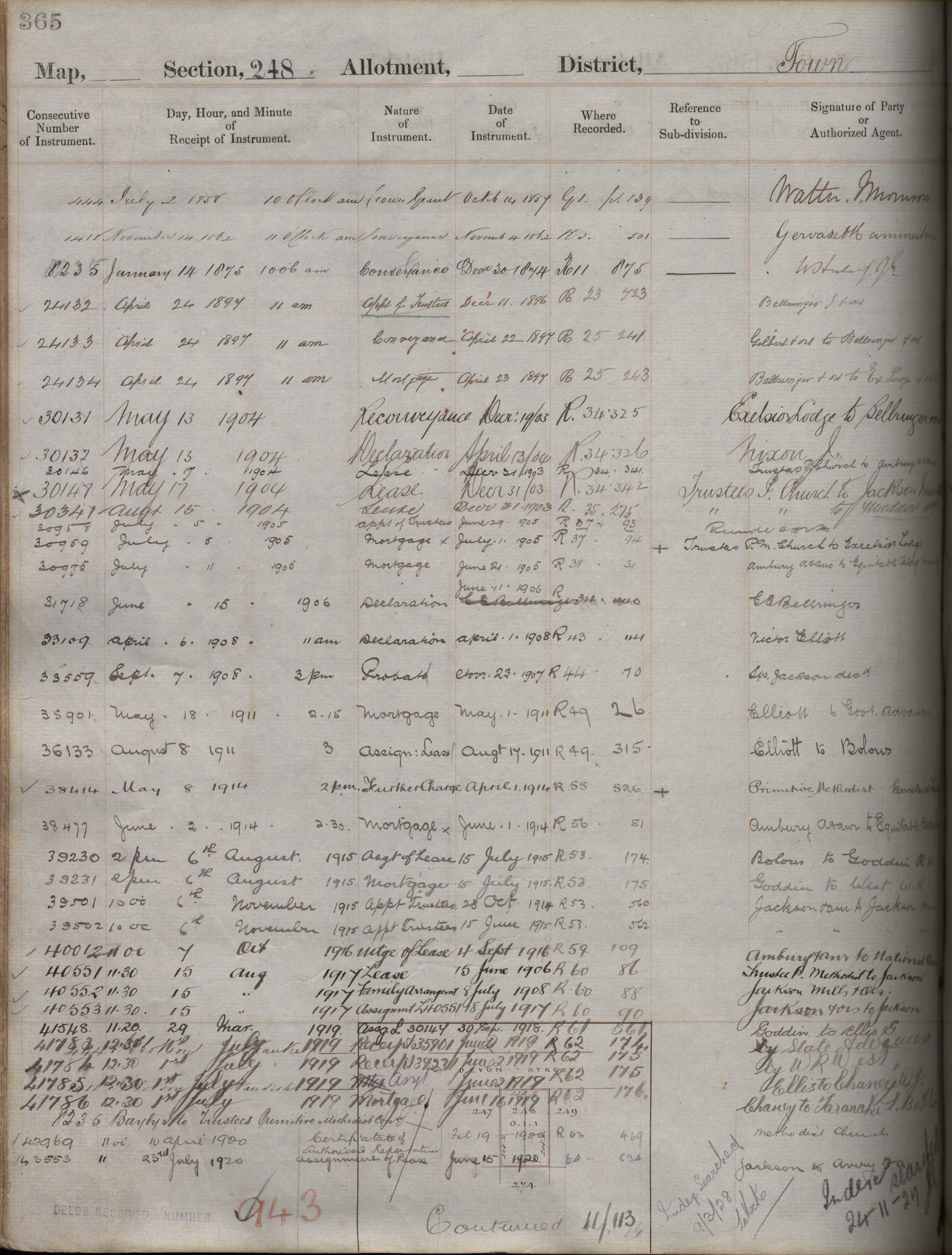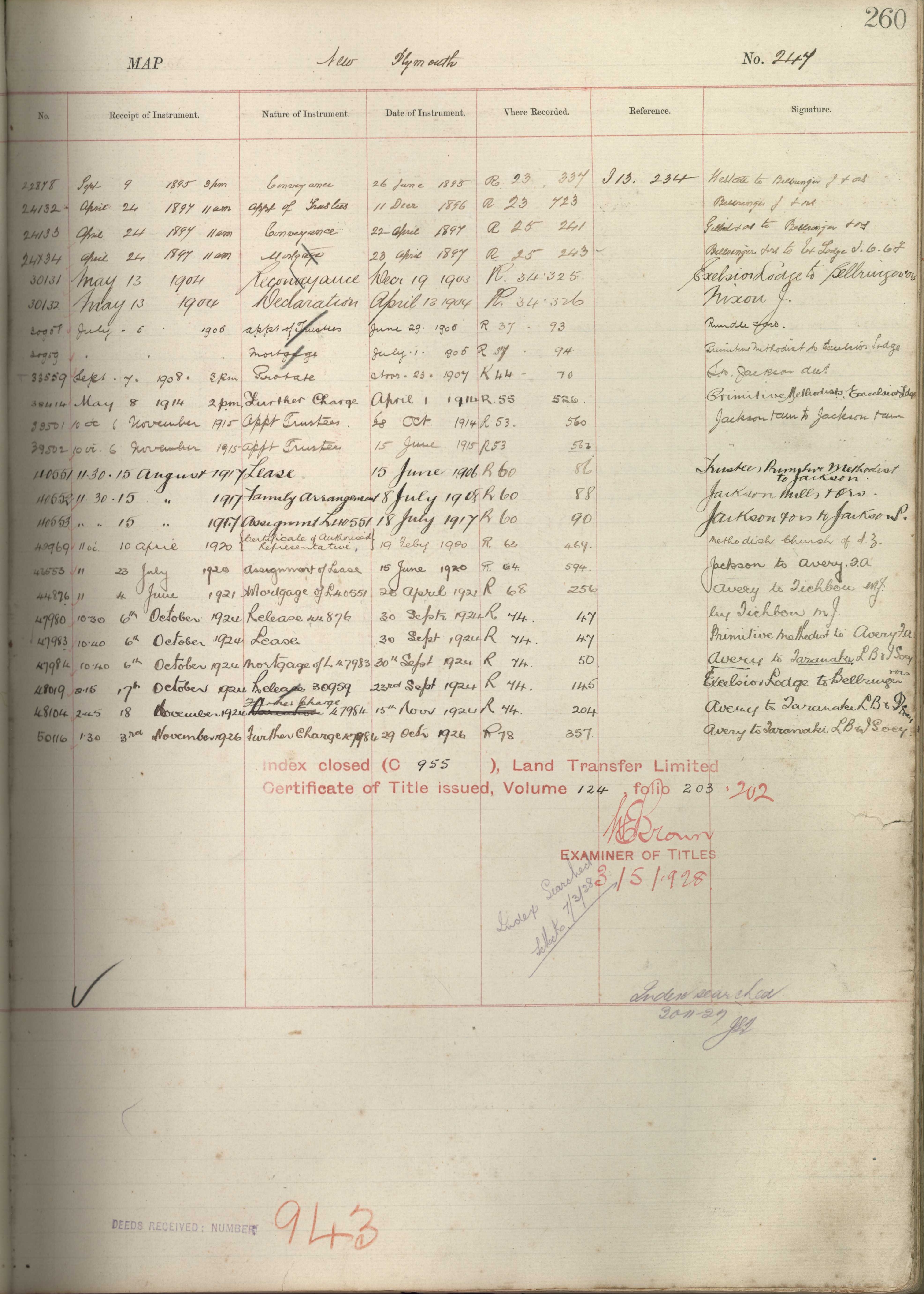 Town Section 247, Taranaki Land Deeds Index I1 page 365. (Archives New Zealand)