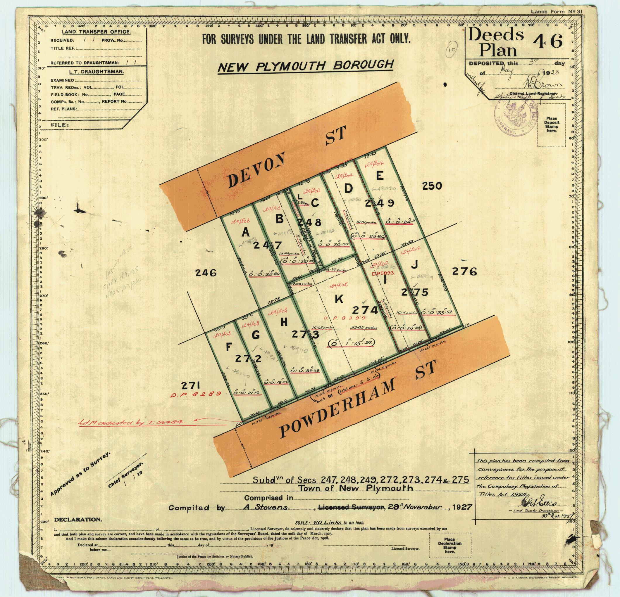 Taranaki DEED46 Sheet 1 (1927), ICS Pre 300,000 Cadastral Plan Index (Imaged by LINZ)