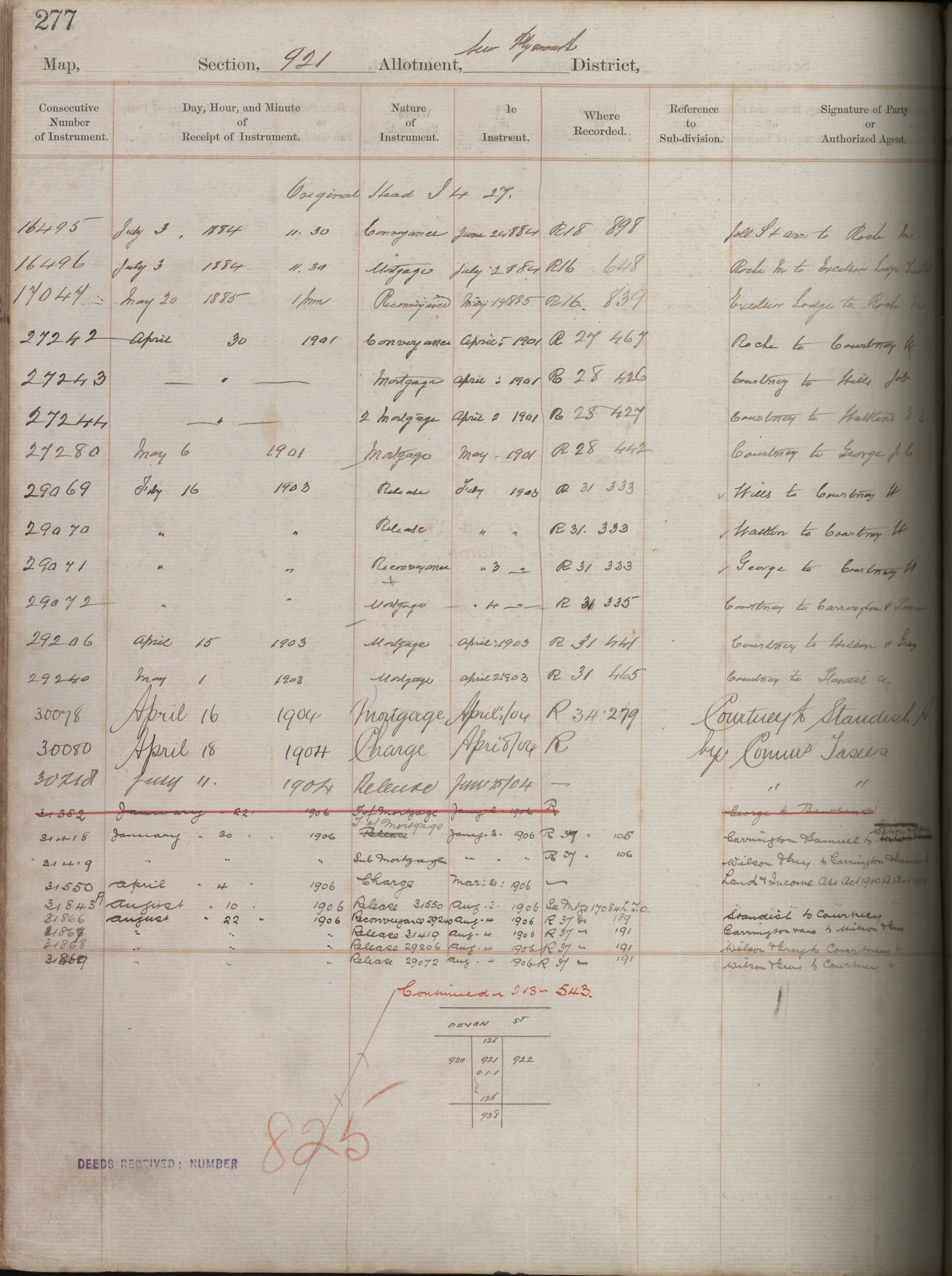 Town Section 921, Taranaki Land Deed Index I4 Page 277. (Archives New Zealand)