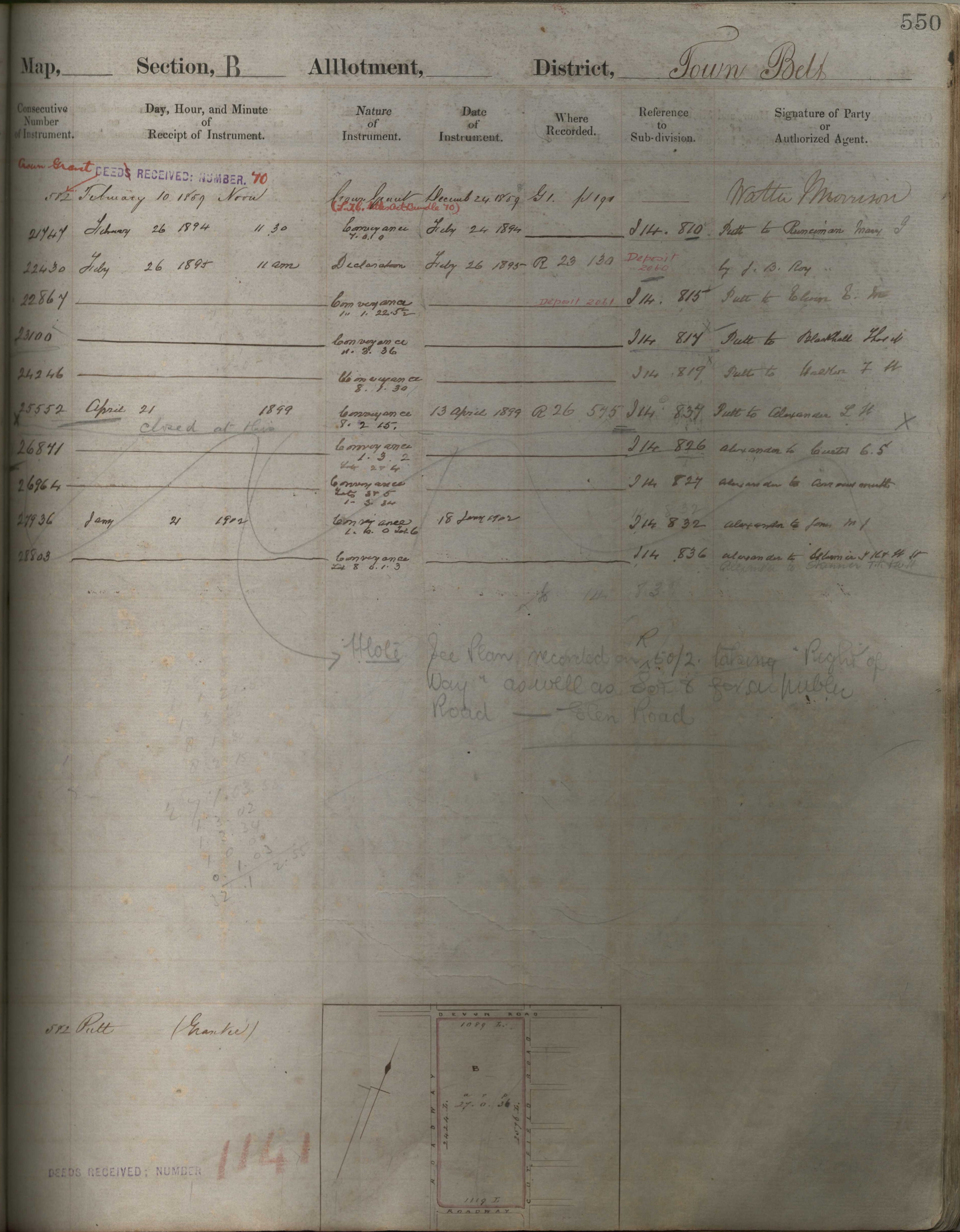 Town Belt B, Taranaki Land Deed Index I1 page 550 (Archives New Zealand)