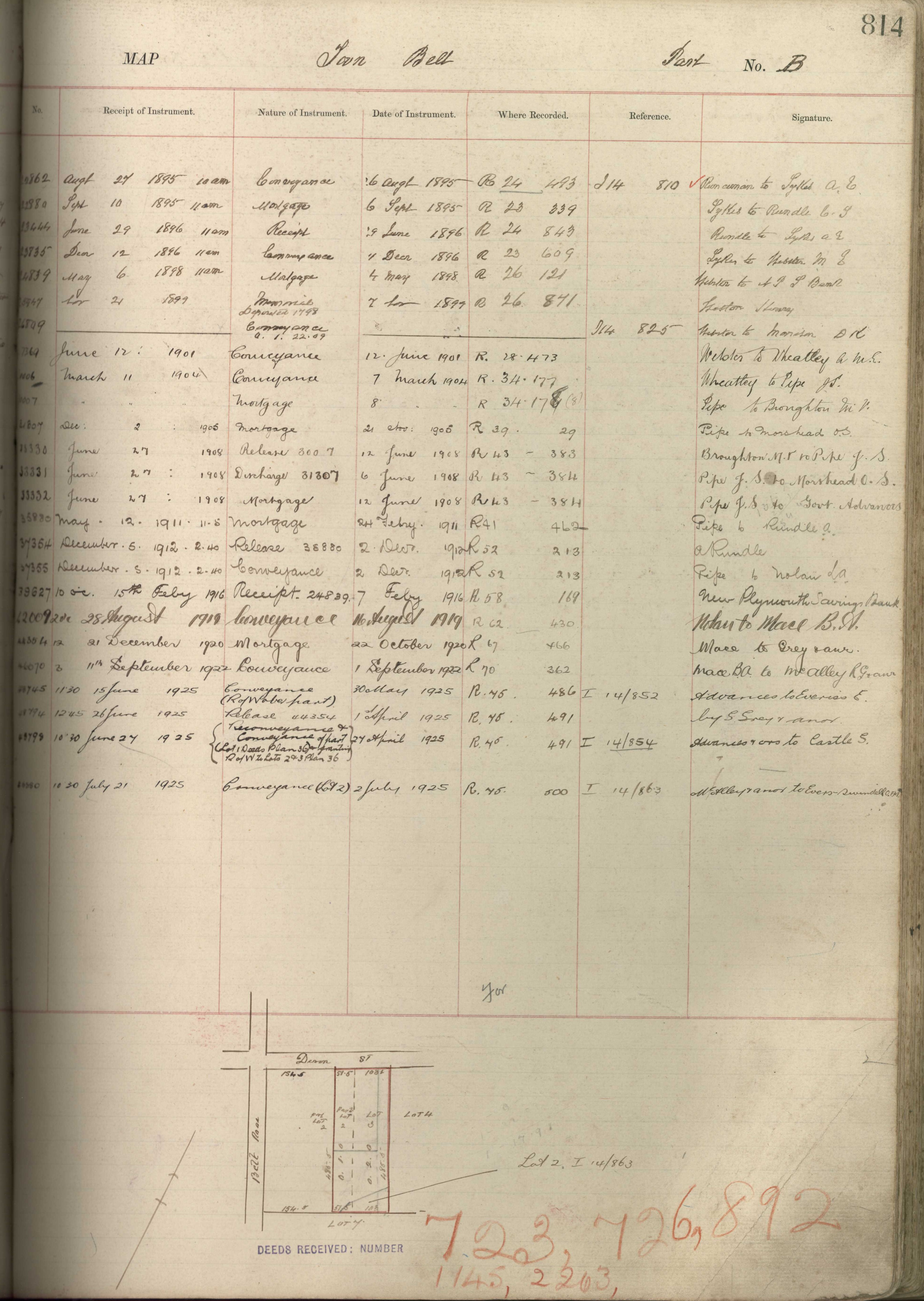Town Belt (Part) B, Taranaki Land Deed Index I14 page 814. (Archives New Zealand)