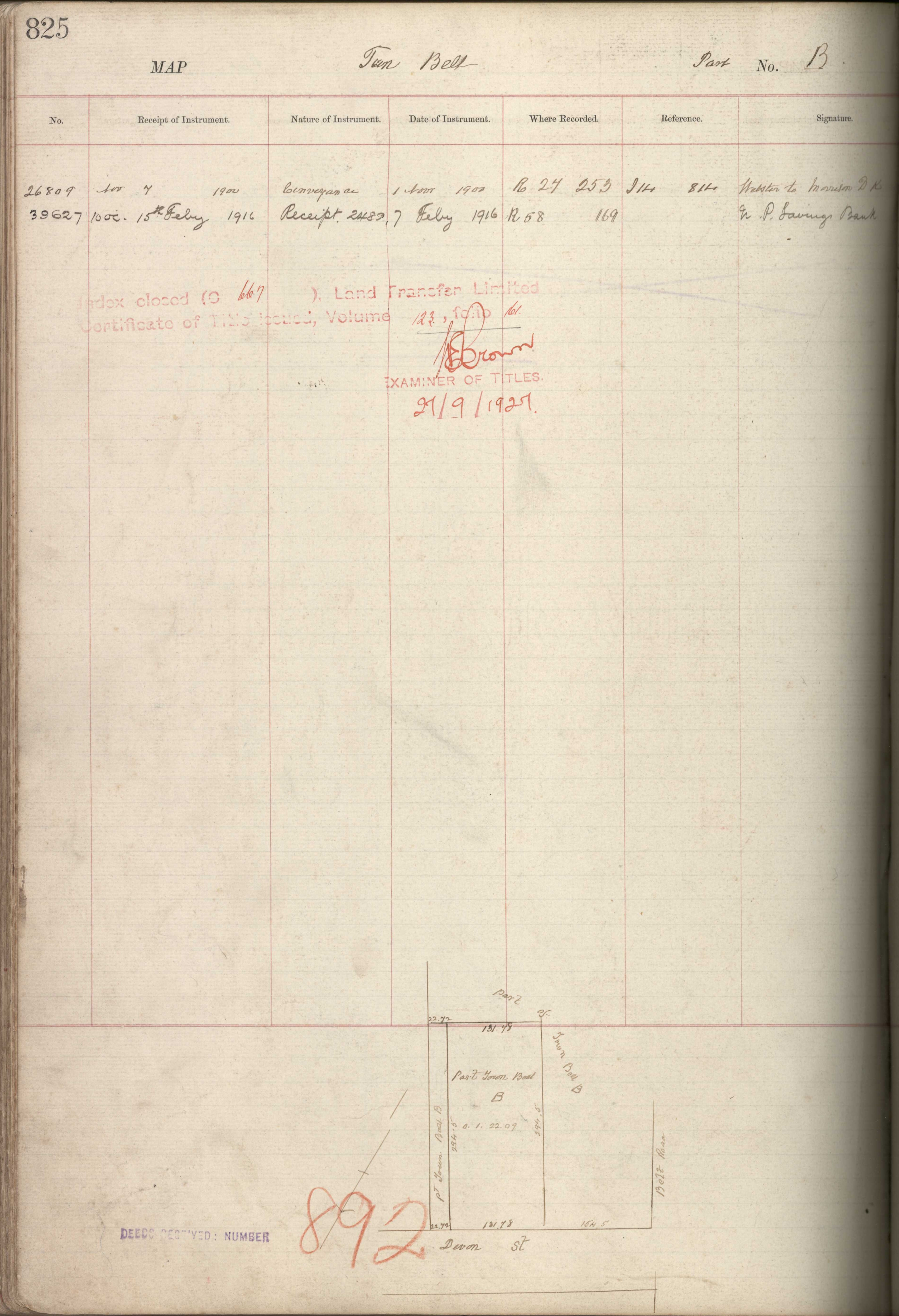 Town Belt (Part) B, Taranaki Land Deed Index I14 page 825. (Archives New Zealand)