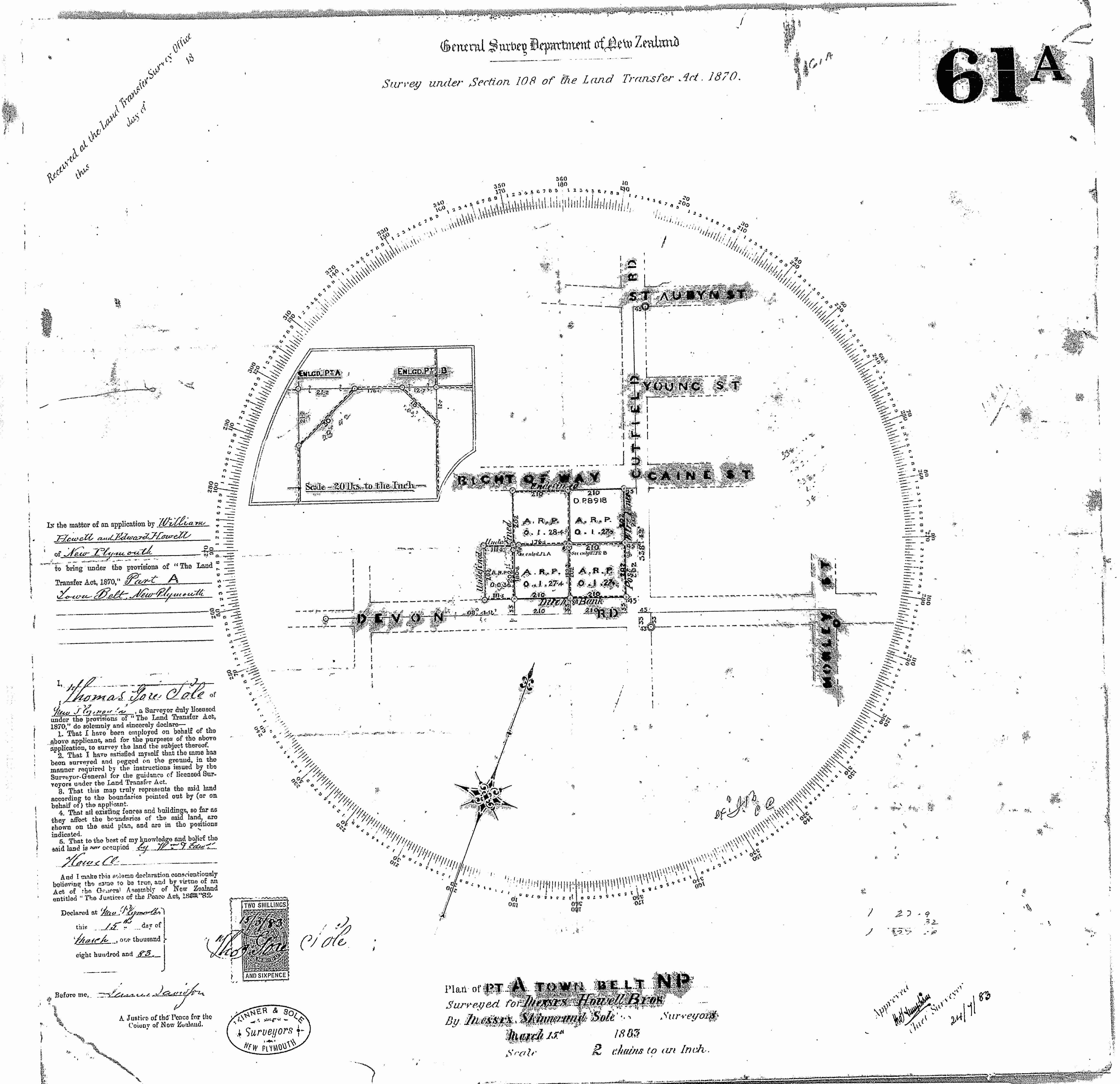 Taranaki DP61 A Sheet 1 (1883), ICS Pre 300,000 Cadastral Plan Index (Imaged by LINZ)