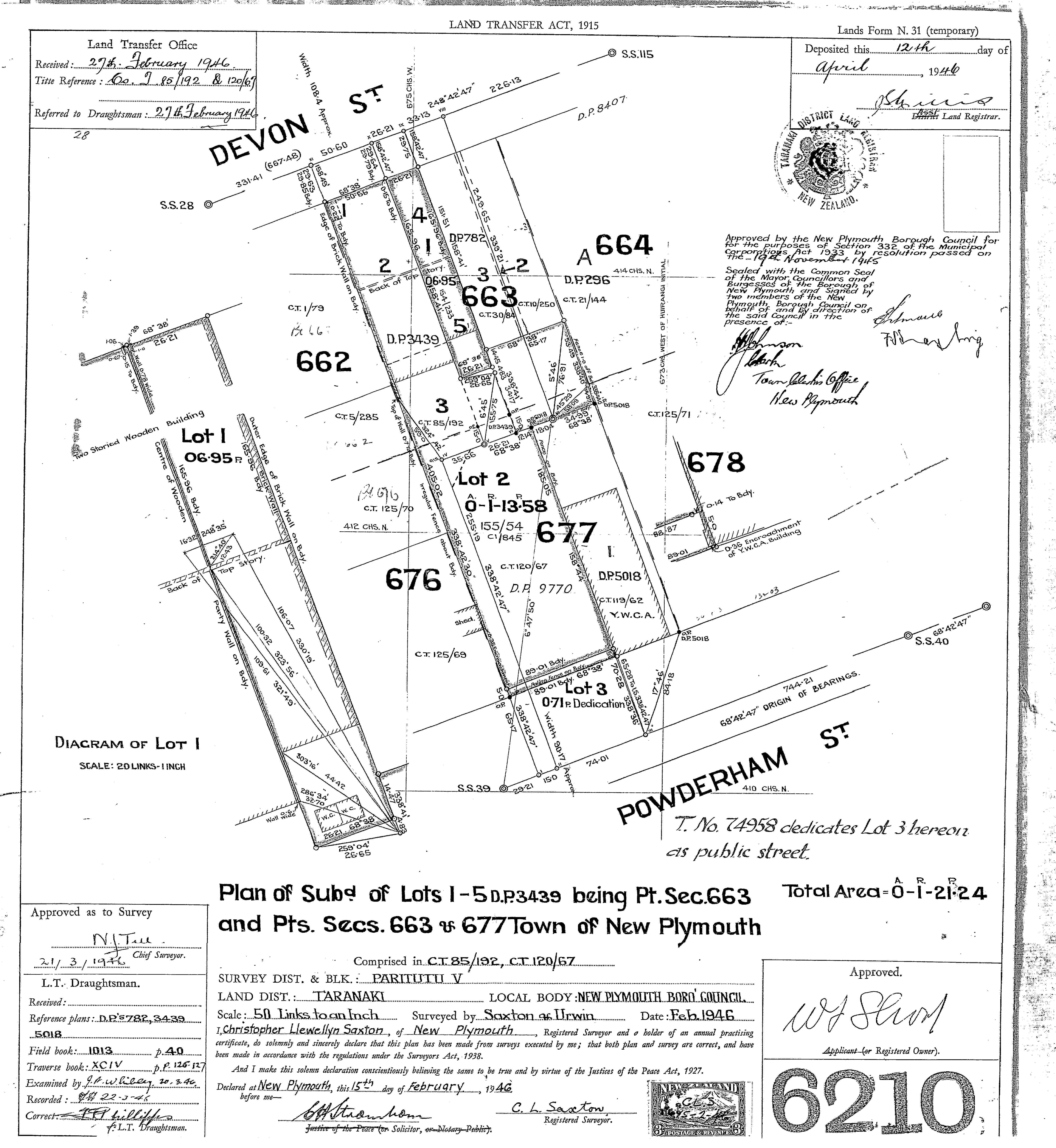 Taranaki DP6210 Sheet 1 (1946), ICS Pre 300,000 Cadastral Plan Index (Imaged by LINZ)