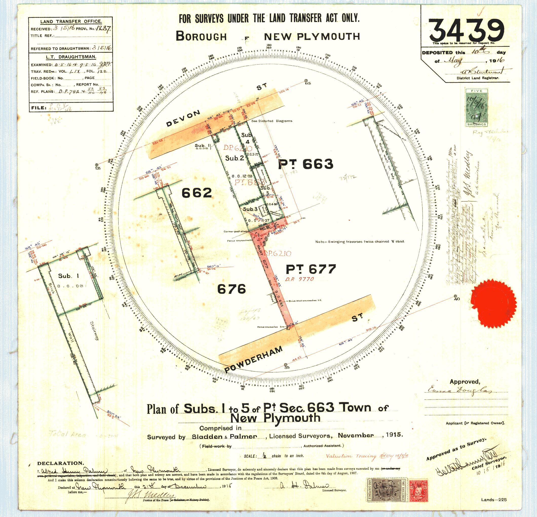 Taranaki DP3439 Sheet 1 (1915), ICS Pre 300,000 Cadastral Plan Index (Imaged by LINZ)