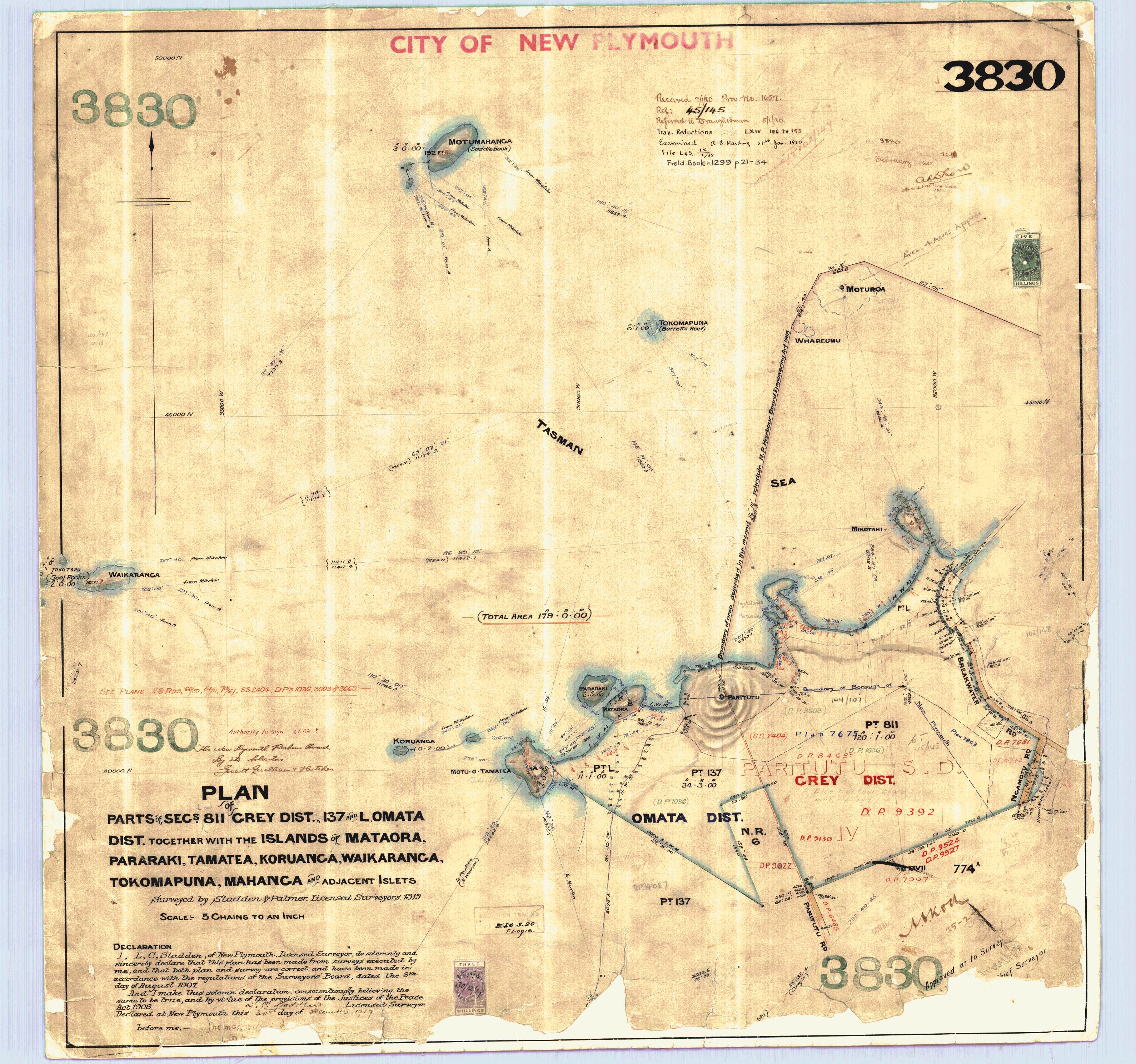 Taranaki DP3830 Sheet 1 (1919), ICS Pre 300,000 Cadastral Plan Index (Imaged by LINZ)