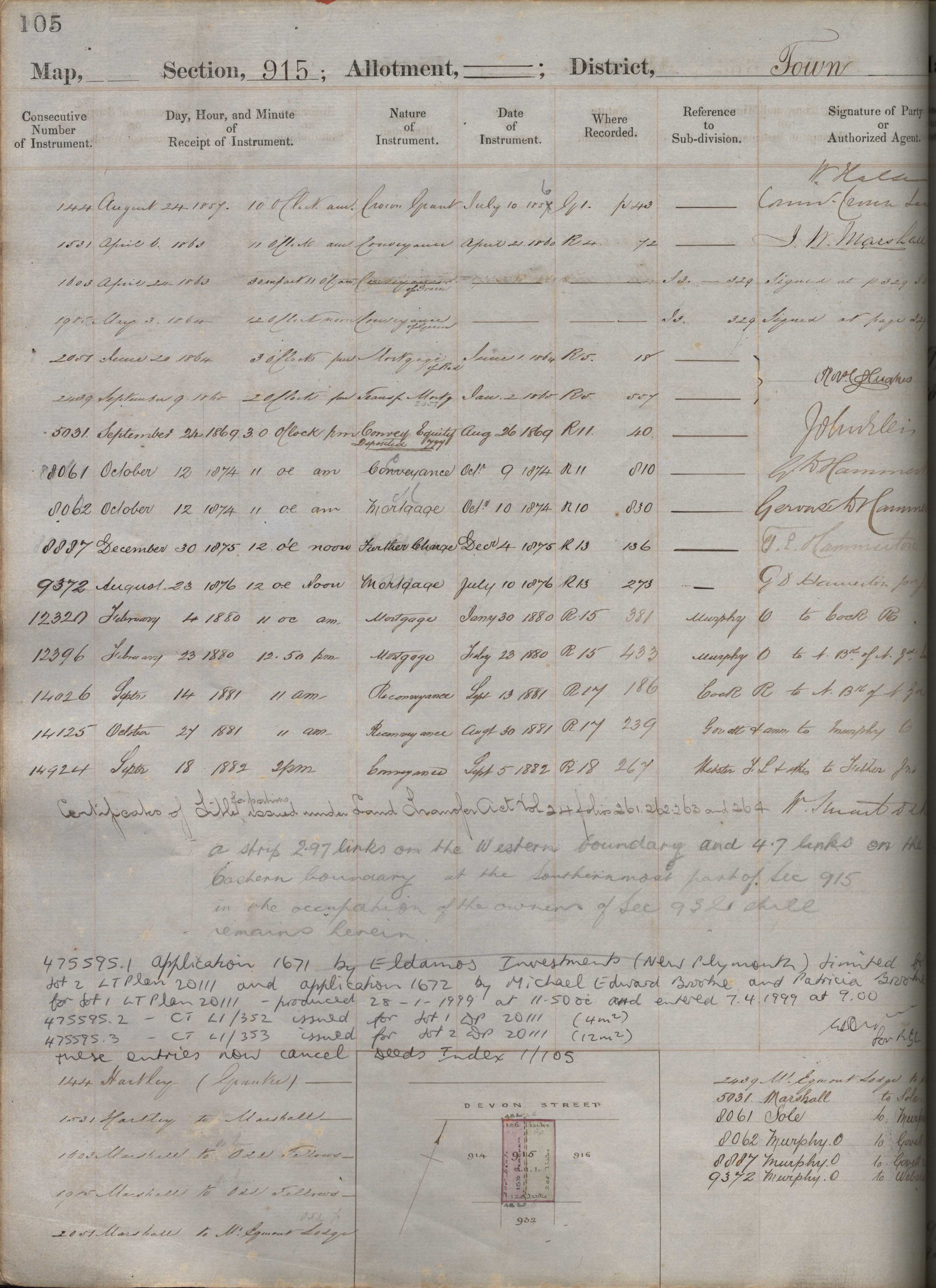 Town Section 915, Taranaki Land Deed Index I1 page 105. (Archives New Zealand)