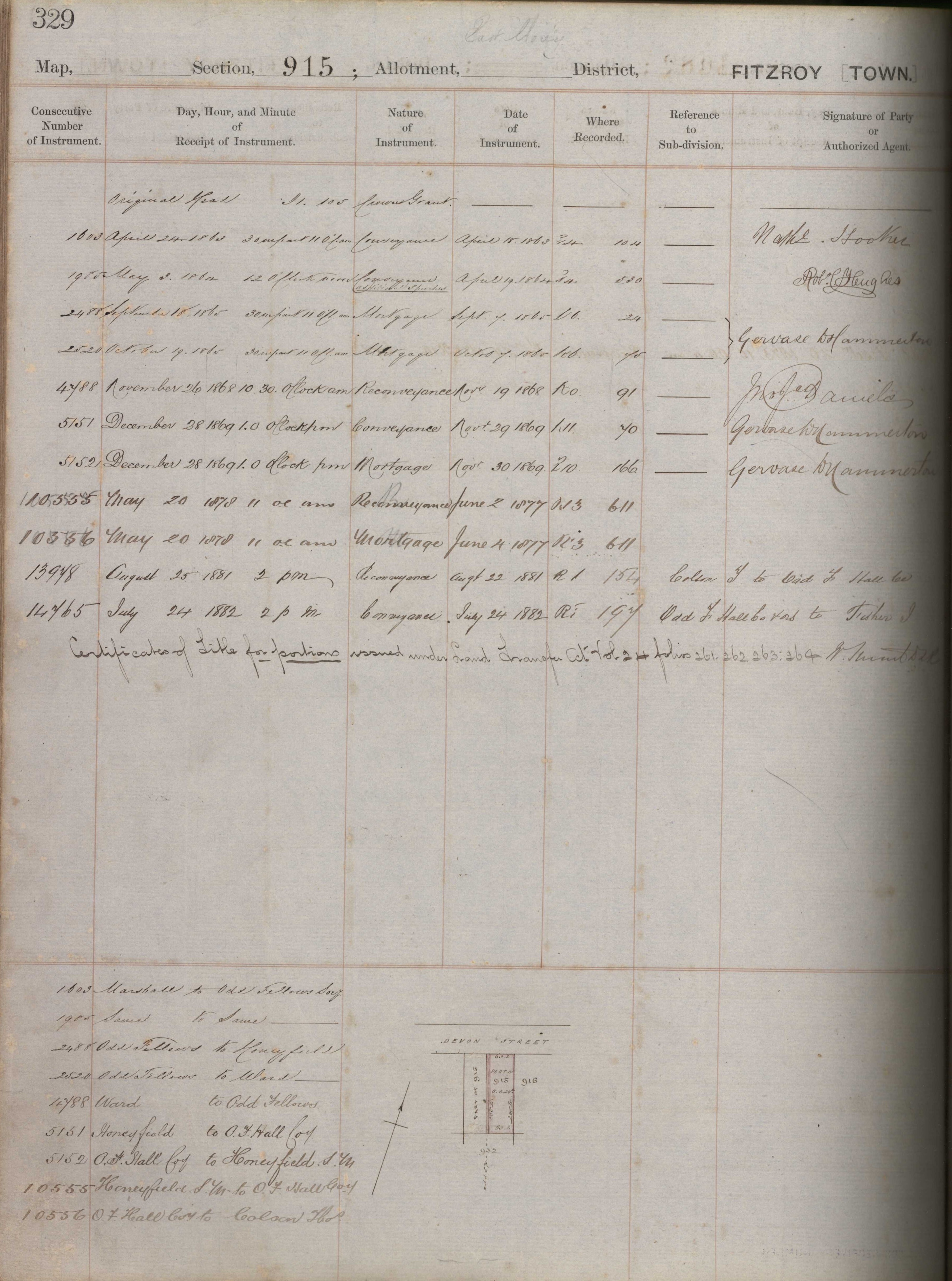 Town Section (Part) 915, Taranaki Land Deed Index I3 page 329. (Archives New Zealand)