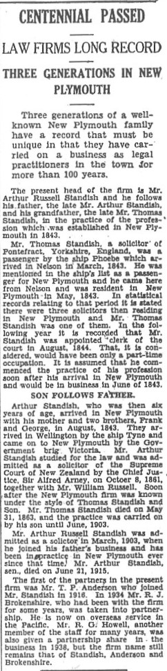 Law Firms Long Record (Taranaki Herald 13 July 1943)