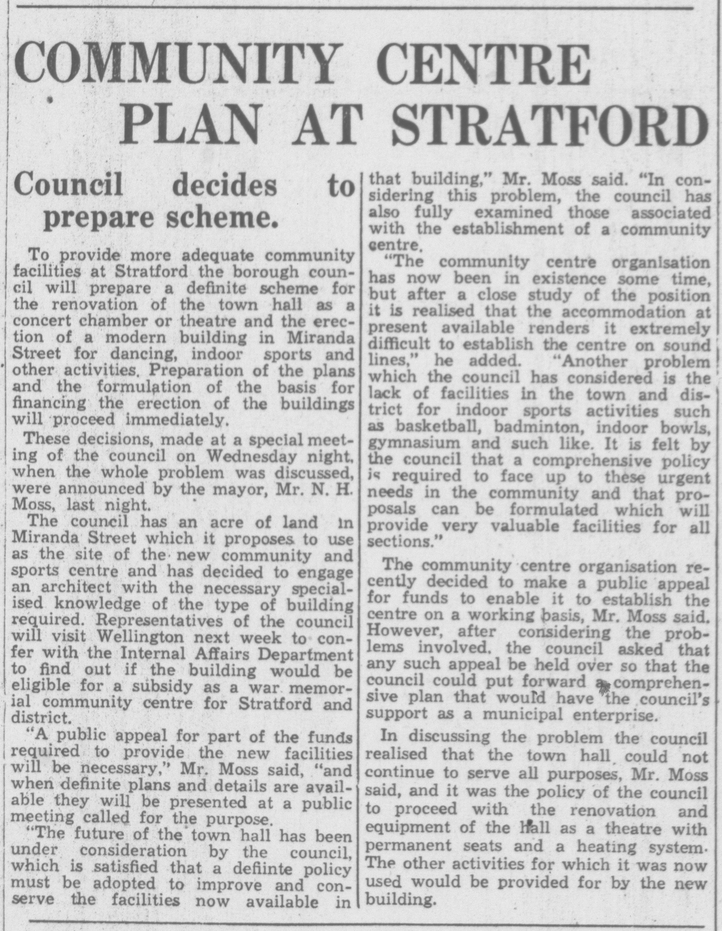 Stratford War Memorial Community Centre (Taranaki Herald 21 April 1955)